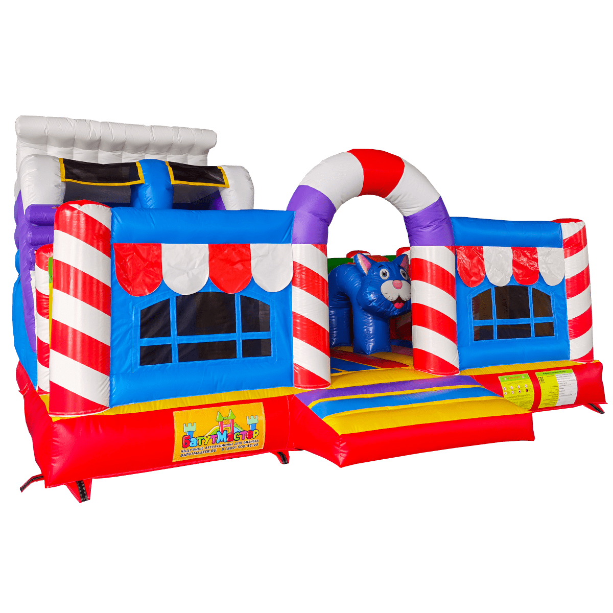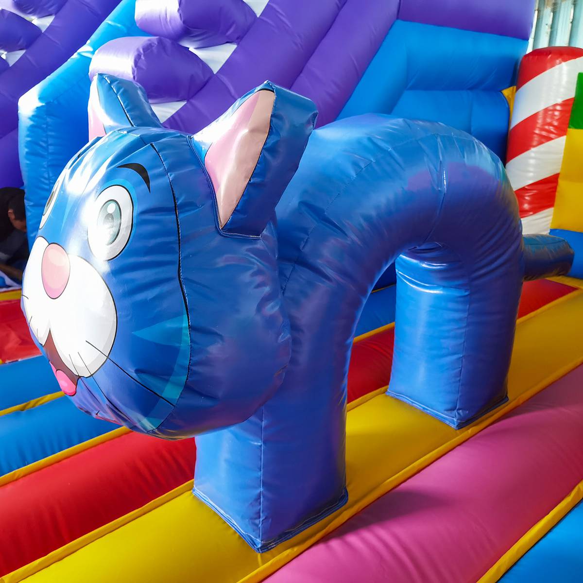 Поливинилхлорид – основной материал изделия, способен выдерживать температуру от -15 до +60. Коммерческий батут «Веселый домик» можно устанавливать как внутри помещений, так и снаружи. Технические характеристики и набор игровых элементов делают аттракцион отличным оборудованием для бизнеса. Может быть использован: