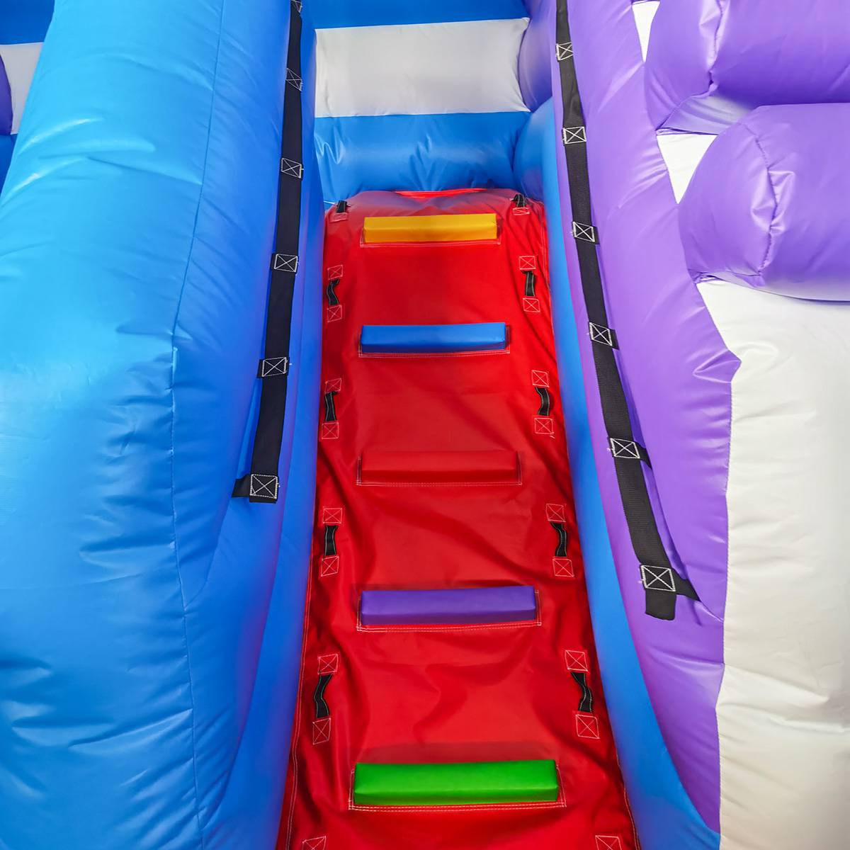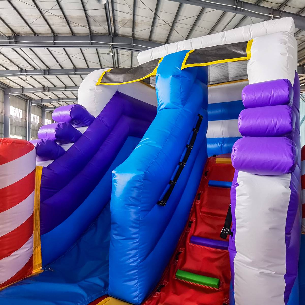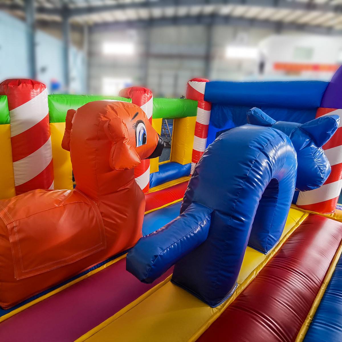 Для развлечения посетителей в конструкцию включены – скат высотой 170 см, механизированная голова, сухой бассейн, надувные формы для активных игр. Внутри комплекса есть свободный простор для бегания и прыгания.