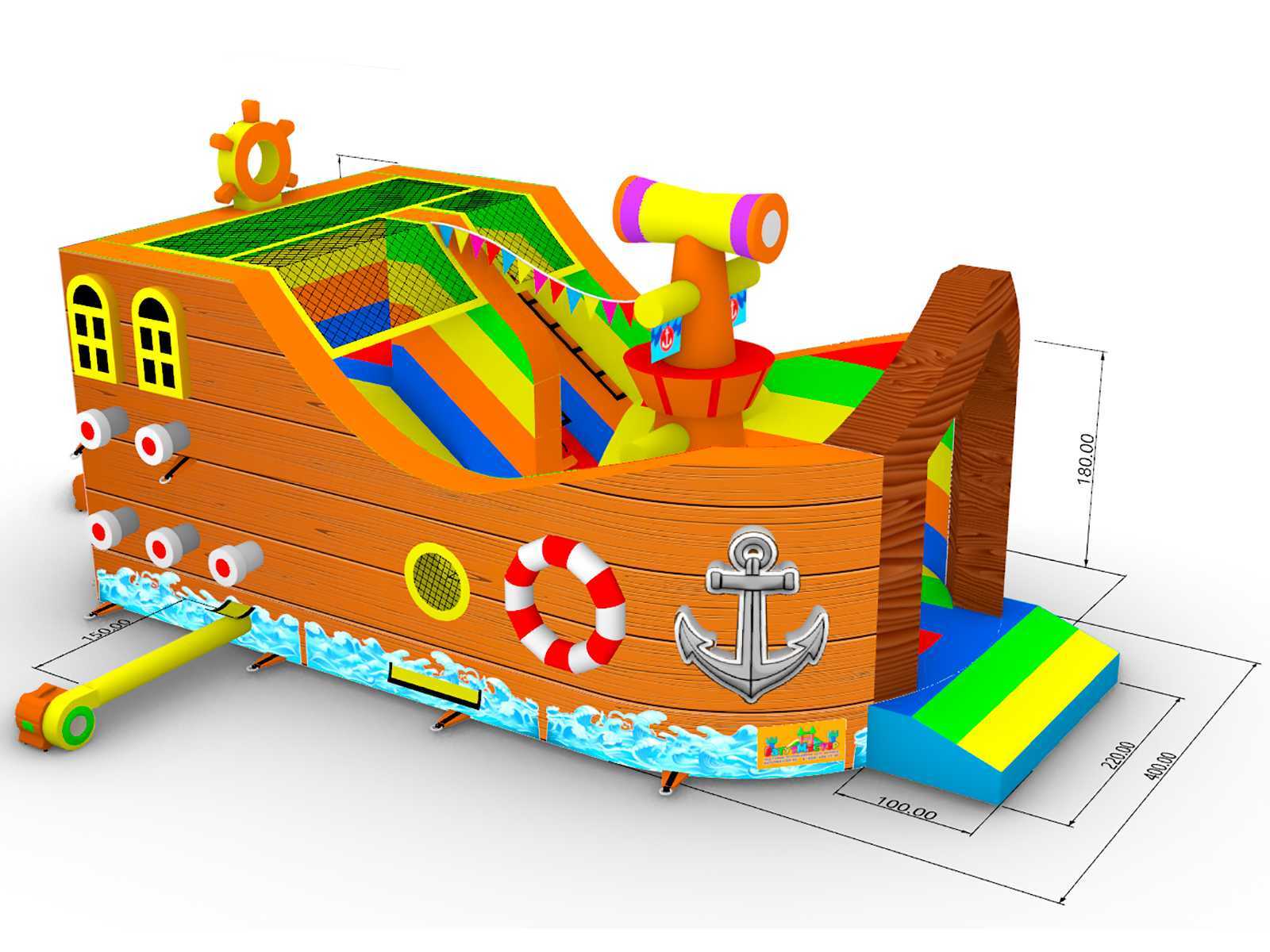 «Веселый кораблик» — это настоящий пиратский корабль, воплощённый в ярком и безопасном надувном формате! Он рассчитан на коммерческое использование и станет звездой любого детского мероприятия, парка или развлекательного центра. Его размеры 7x4x3.5 м позволяют разместить до 8 детей одновременно, при этом предусмотрено множество игровых элементов: горка со стартовой высотой горки 1 м, скалодром, столбики и надувные фигуры морских обитателей. Это не просто батут — это целый пиратский квест, где дети могут бегать, прыгать, ползать и скатываться с горки.