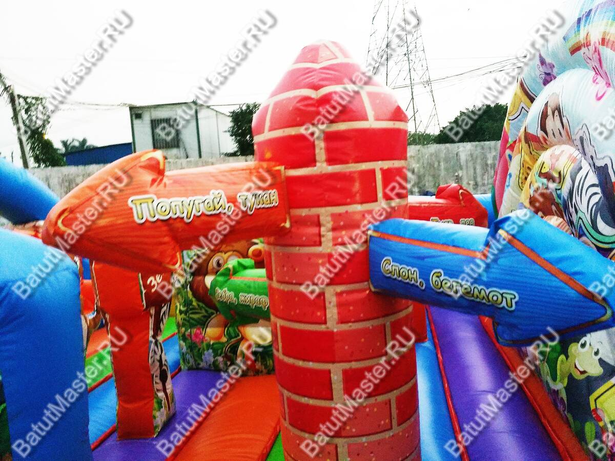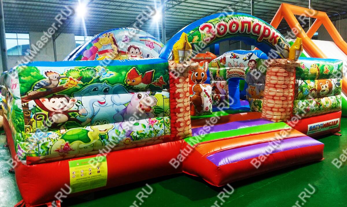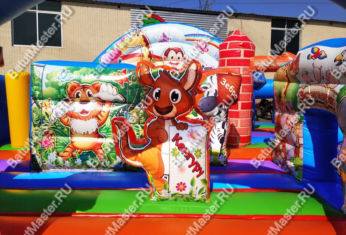 После арки с надписью «Зоопарк» ребёнок попадает внутрь, где его ждут разнообразные развлечения. Тут и там стоят игровые фигуры в виде животных, с которыми можно поиграть, и даже установлен указатель с названиями животных, как в настоящем зоопарке. Детям точно будет, чем заняться, ведь тут есть пространство для прыжков, бега и множество мест, где можно проползти или залезть.