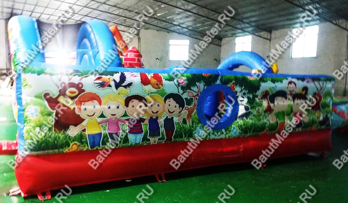 Коммерческий надувной батут «Весёлый зоопарк» невероятно красочен и красив, и дети точно не пройдут мимо разрисованных стен этого аттракциона. Принт с весёлыми животными и посетителями зоопарка настолько приятен взгляду, что даже взрослый хотел бы поиграть в таком батуте, а это значит, что родители поведут ребёнка именно к этому батуту, что полезно для бизнеса.