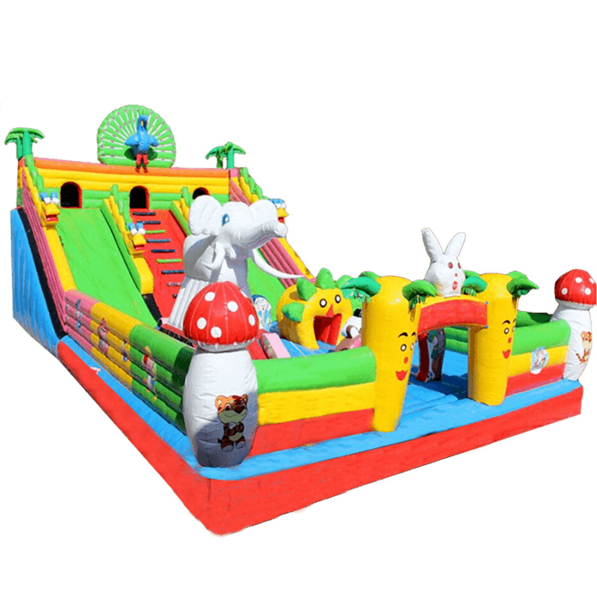 Оборудовано место для прыжков и бега, есть низкие горки для младших детей. Яркий батут включает также две большие горки для спуска и трамплин для лазания между ними. По бокам трамплина расположились две надувные красочные змейки, которые служат дополнительной поддержкой. Три ниши на горках являются дополнительным место для отдыха, а также позволяют избежать толкучки при спуске. Высокие боковые стенки надувного батута обеспечивают надежную безопасность каждого посетителя. Аттракцион в наличии уже сегодня.