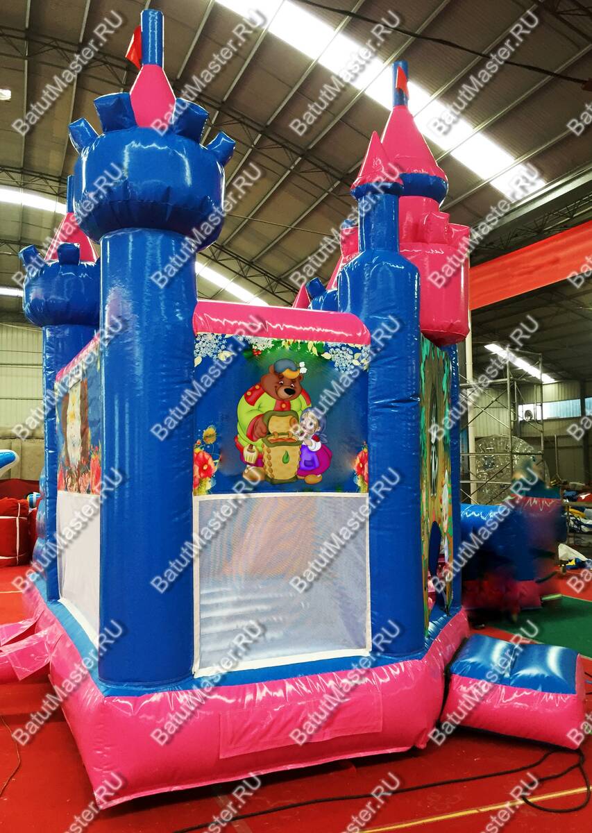 Также ребят могут привлечь рисунки на стенах батута и их ярко-розовые конусообразные крыши, которые и делают этот аттракцион настоящим замком для малышей. При этом стенки аттракциона сделаны весьма интересно: верхняя часть покрыта плотным материалом с рисунками, а нижняя сделана в виде сеточки, чтобы взрослые могли наблюдать за своими детьми.