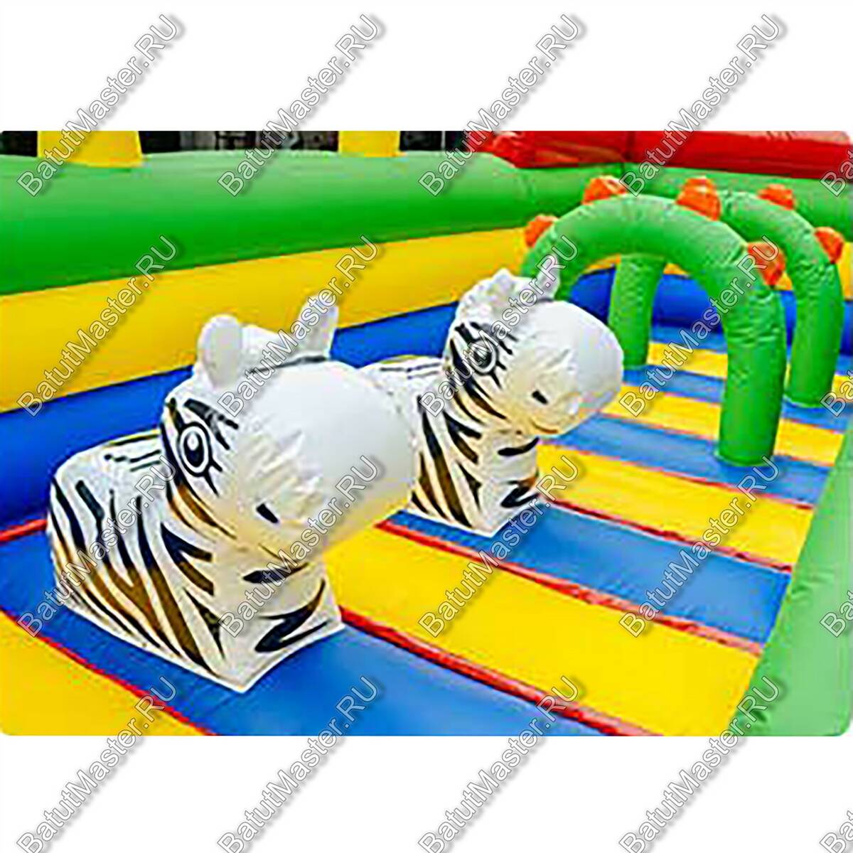 Стоит только ребёнку пройти внутрь входной красочной арки, как его окружит тепло и многообразие развлечений. Ему предлагается поиграть с надувными фигурками симпатичных зебр или же просто попрыгать на большом батутном пространстве. Также дети могут кататься с горки, наслаждаясь тёплым встречным ветерком, или же проползти под надувными небольшими препятствиями.