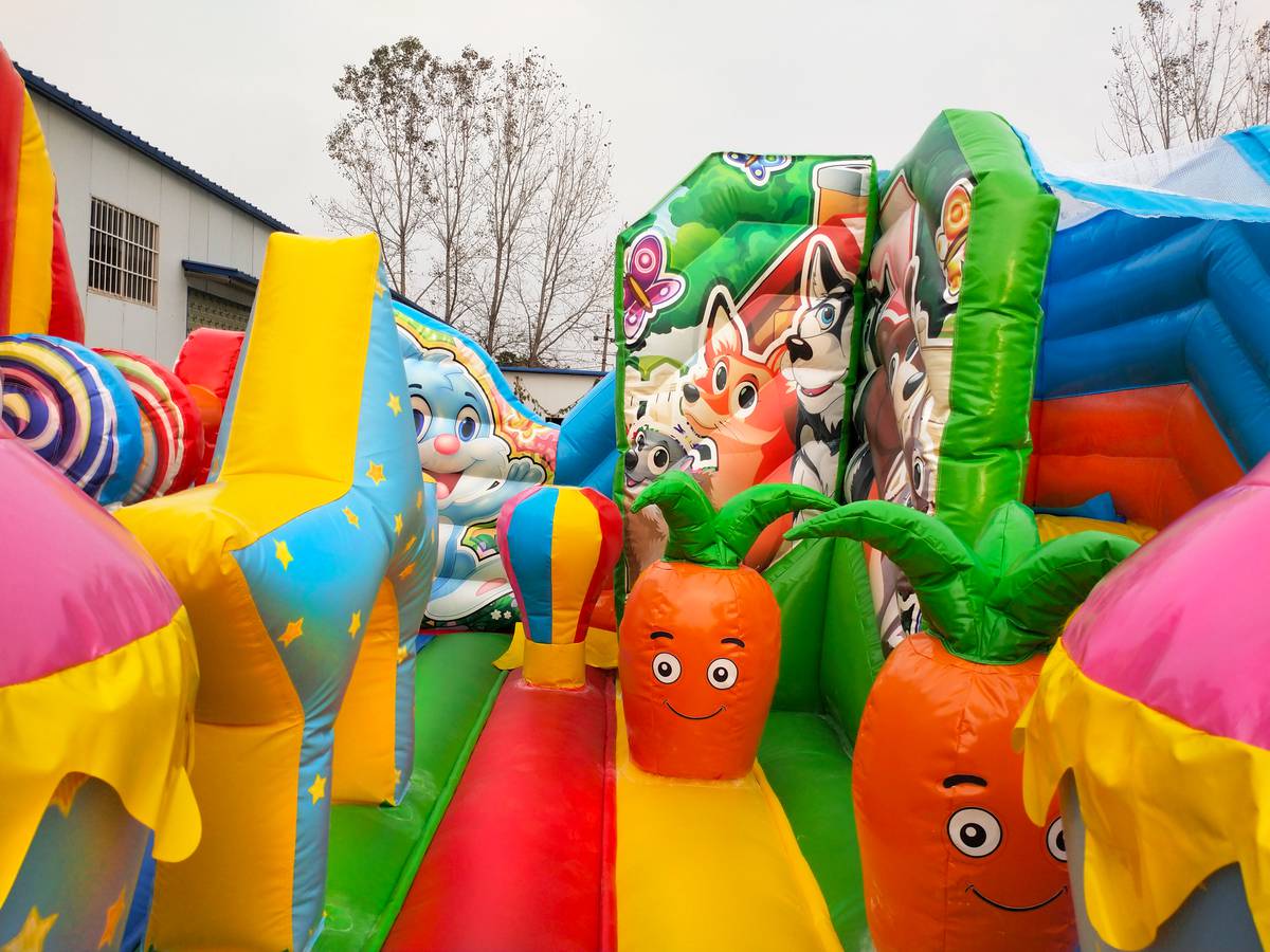 Место для прыжков и для бега, Фигуры декоративные (надувные звери, персонажи, трава, деревья и тд.), Фигуры игровые (арки, столбики, груши, препятствия, лазы)