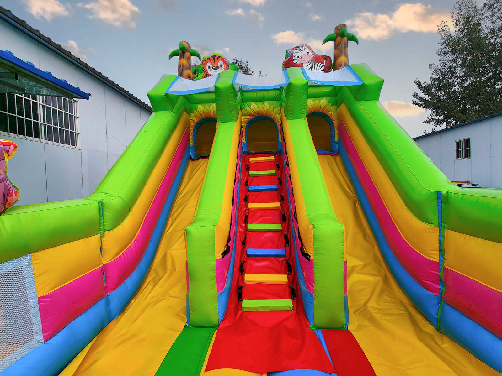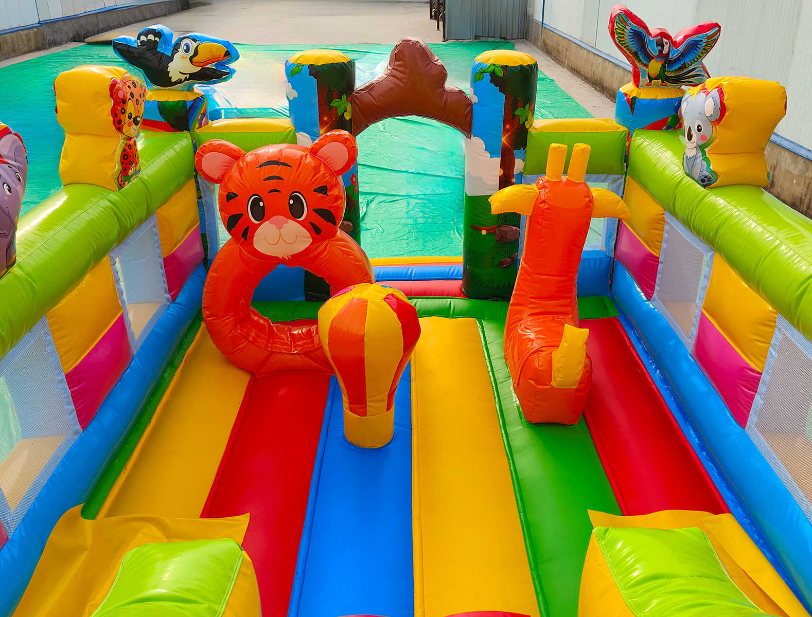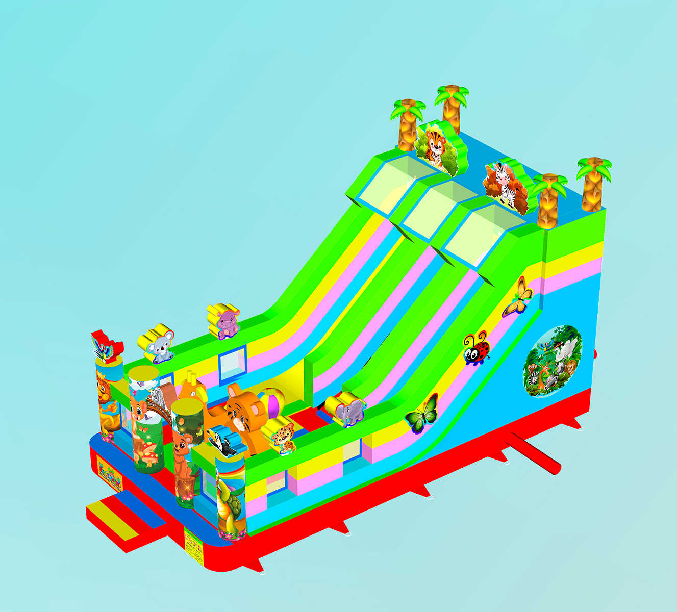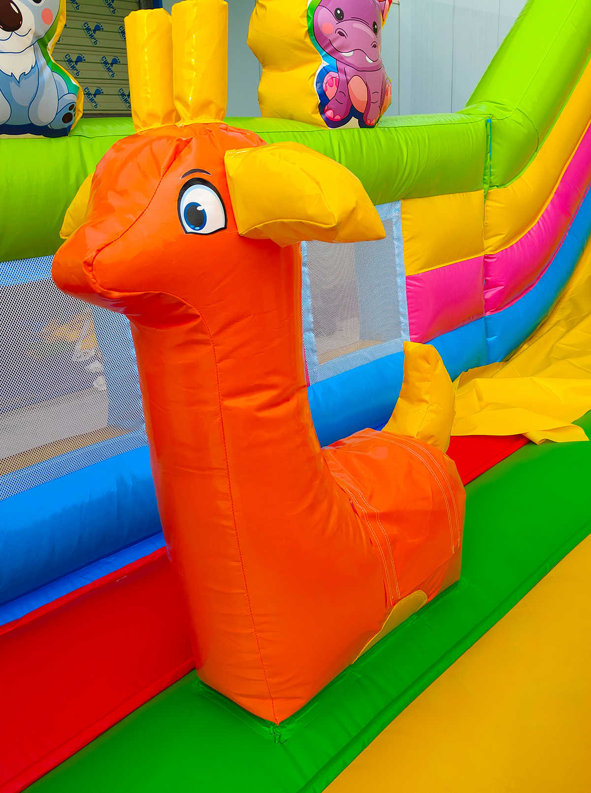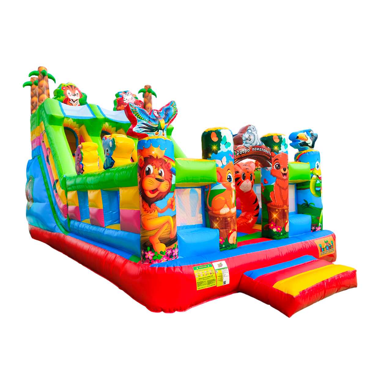 Коммерческий надувной батут «Звериная команда 2» — это воплощение приключений, радости и цвета. Он создан для того, чтобы каждый ребёнок мог почувствовать себя участником весёлого сафари в ярких джунглях. Надувной тигрёнок в виде колечка, надувные фигуры и красочная горка создают неповторимую игровую среду.