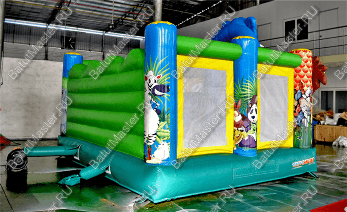 Батут «Зверинец» идеально подходит для бизнеса. Ребята любят мультяшных животных, яркие краски, а также возможность попрыгать и покататься с надувной горки, поэтому данный аттракцион станет для них отличным местом, где всё это можно сделать и при этом не заработать синяки.