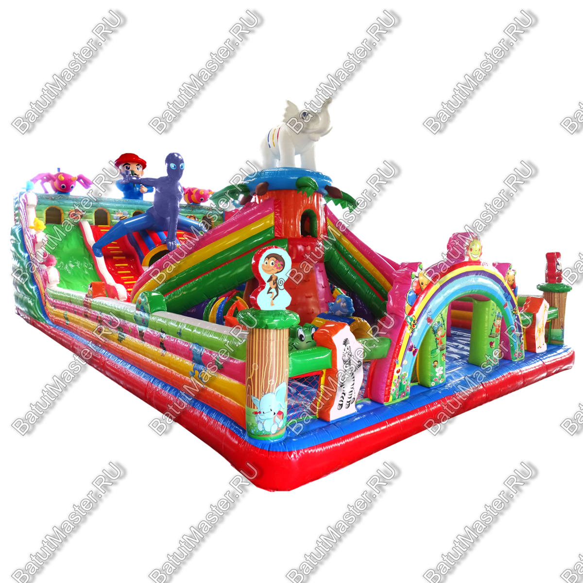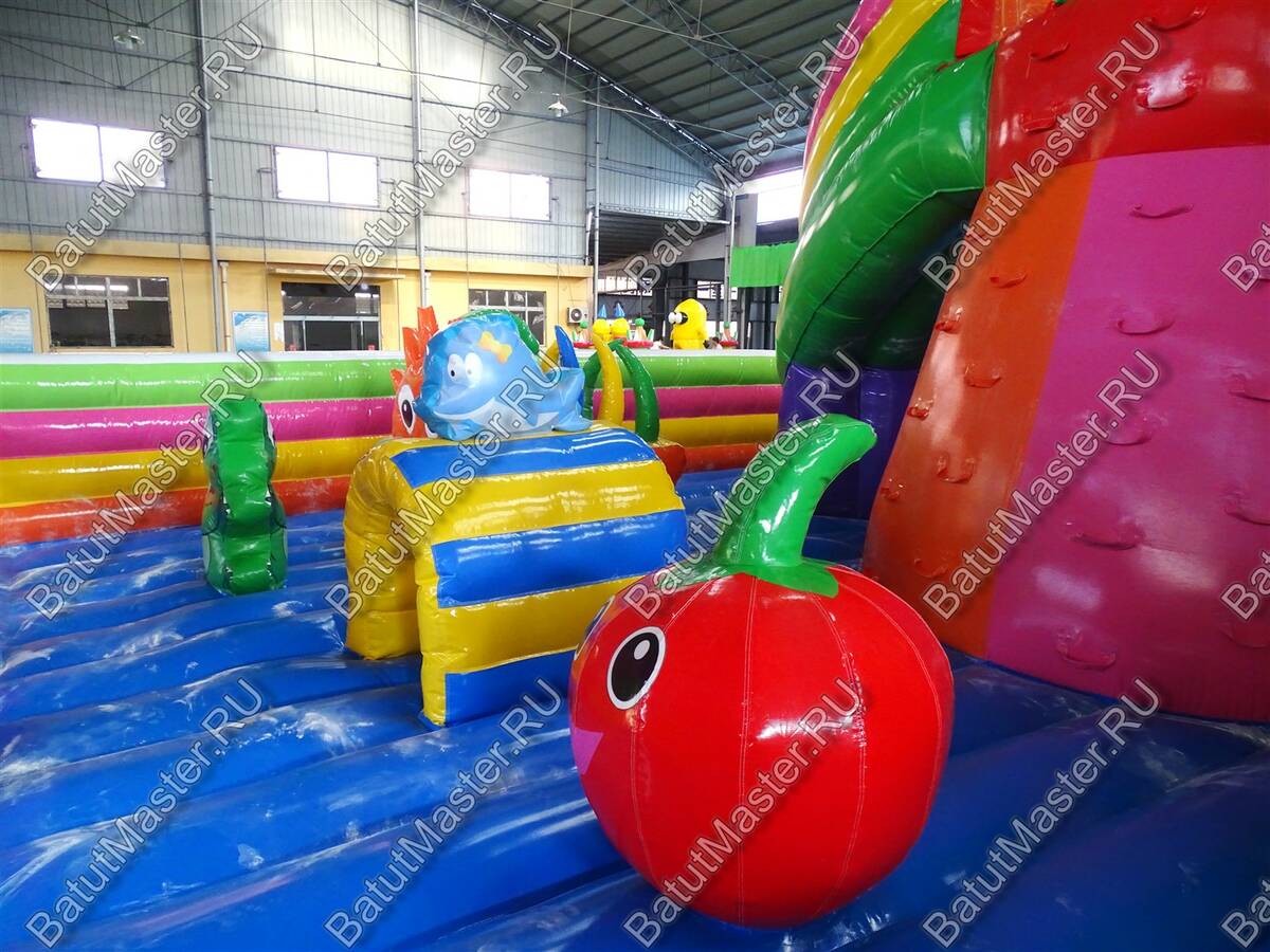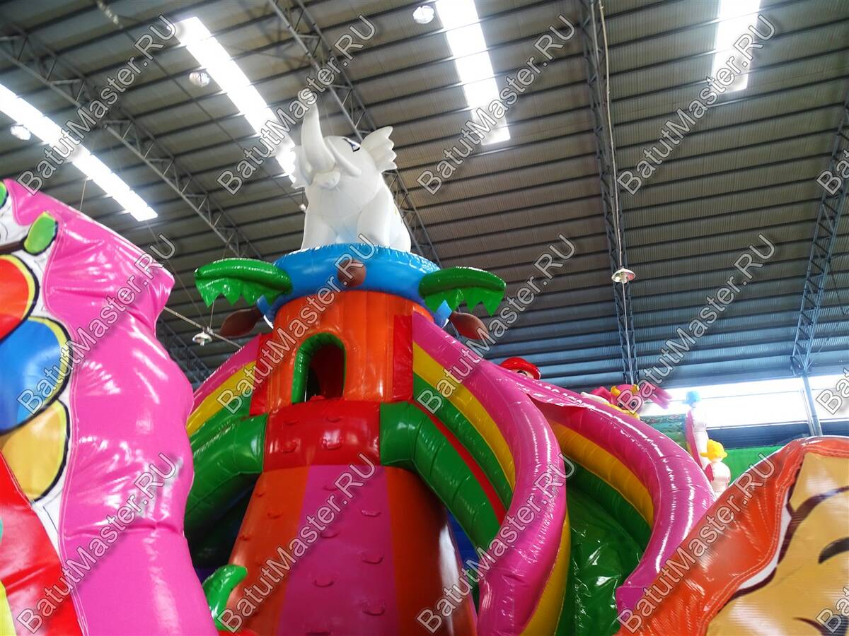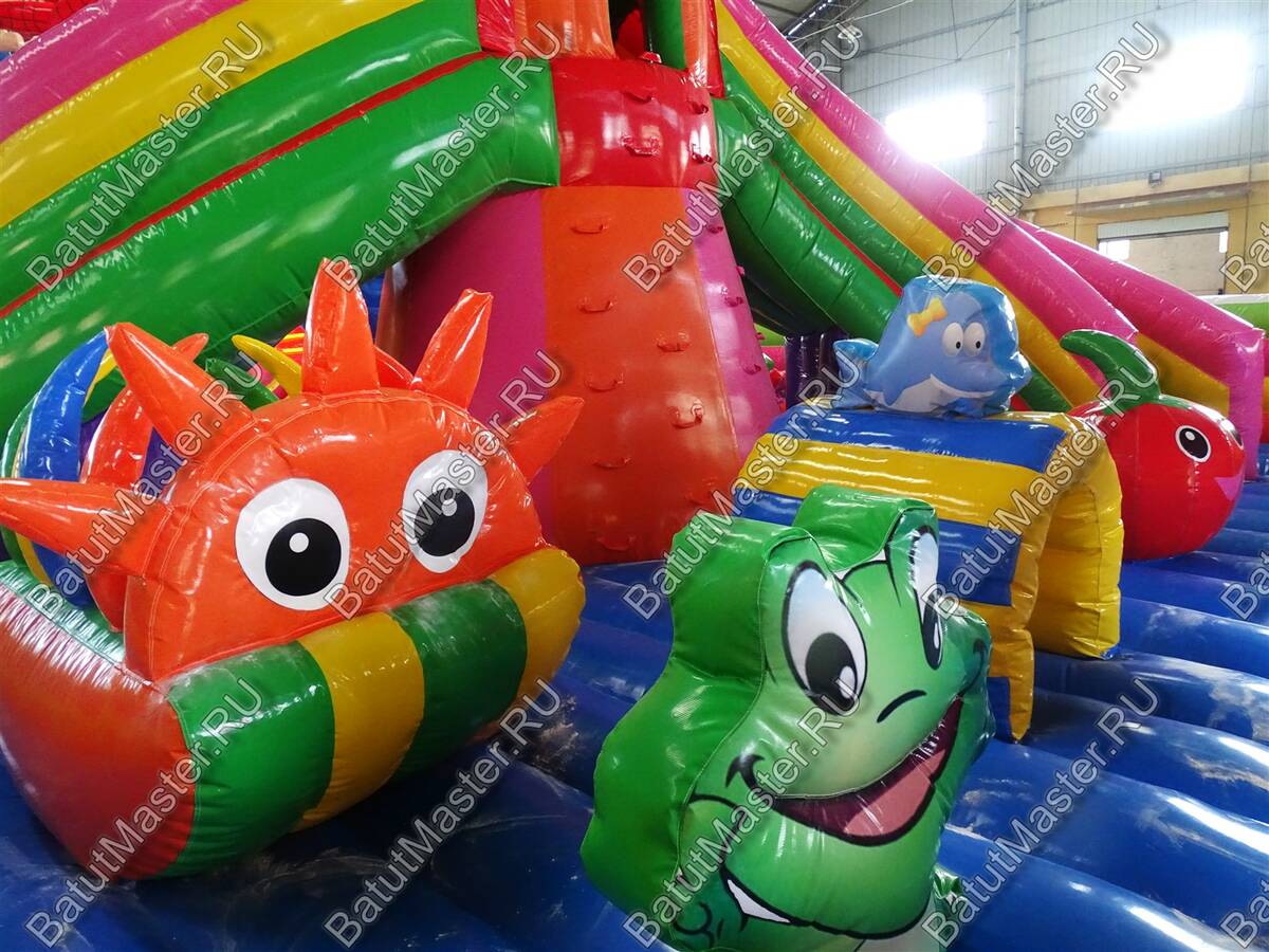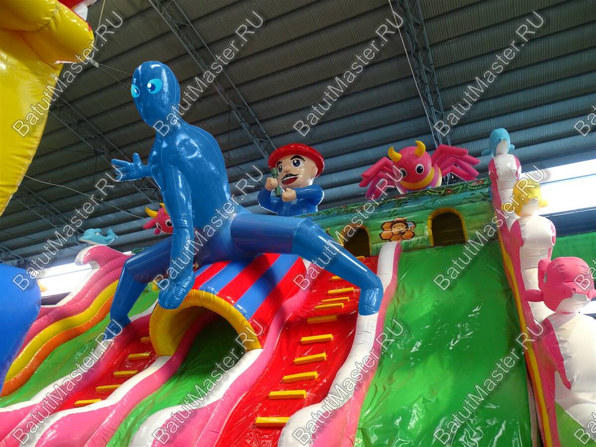 Настоящую феерию радости и восторга доставит детям данный игровой комплекс. Огромное количество локаций с интересными мягкими модулями позволят выбрать занятие по душе каждому ребенку. Прямо на входе детей встречают радостные животные и небольшой тоннель, который невозможно пропустить. Сколько нужно приложить усилий, чтобы взобраться на возвышенность и попасть в домик, а оттуда скатиться по длинной горке вниз. В конце батута находятся сразу три высоких горки, а это значит, что забираться на них будет веселее всей командой. Необычную фигуру в виде человека-паука непременно узнают дети.