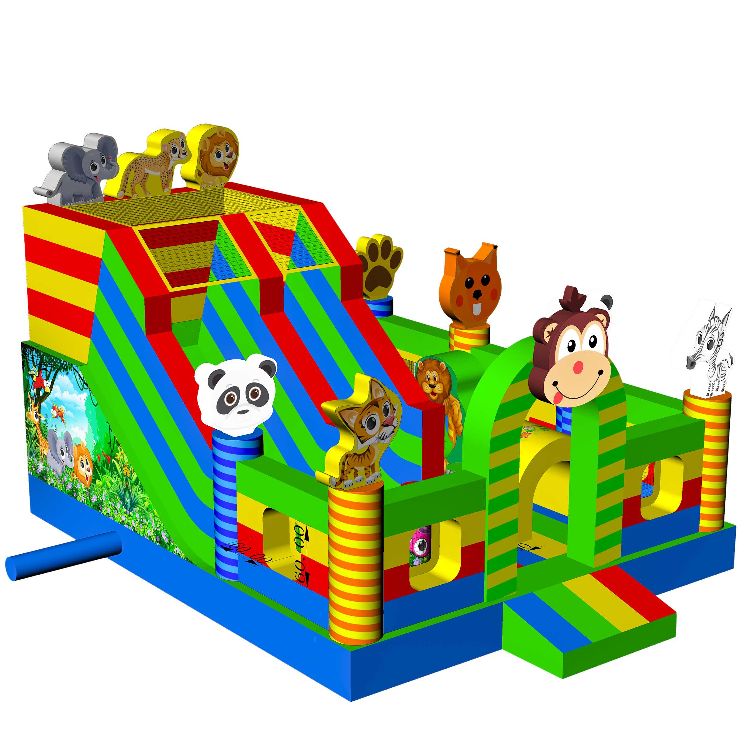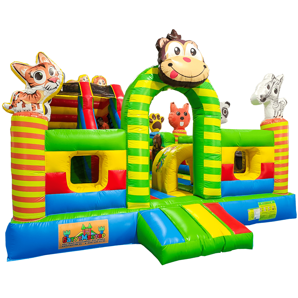 Коммерческий надувной батут «Звериный мир 2» с горкой и аркой, 6*5*4.2 м
