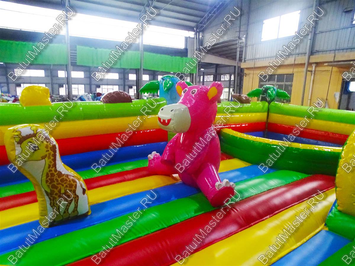 Коммерческий надувной батут собирается за считанные минуты. Батут выполнен из особо прочного, ламинированного поливинилхлорида. Материал не боится солнечных лучей и минусовой температуры.