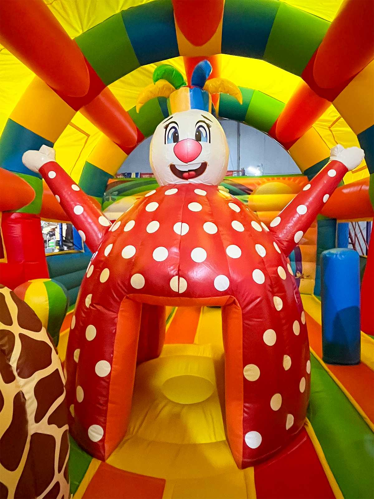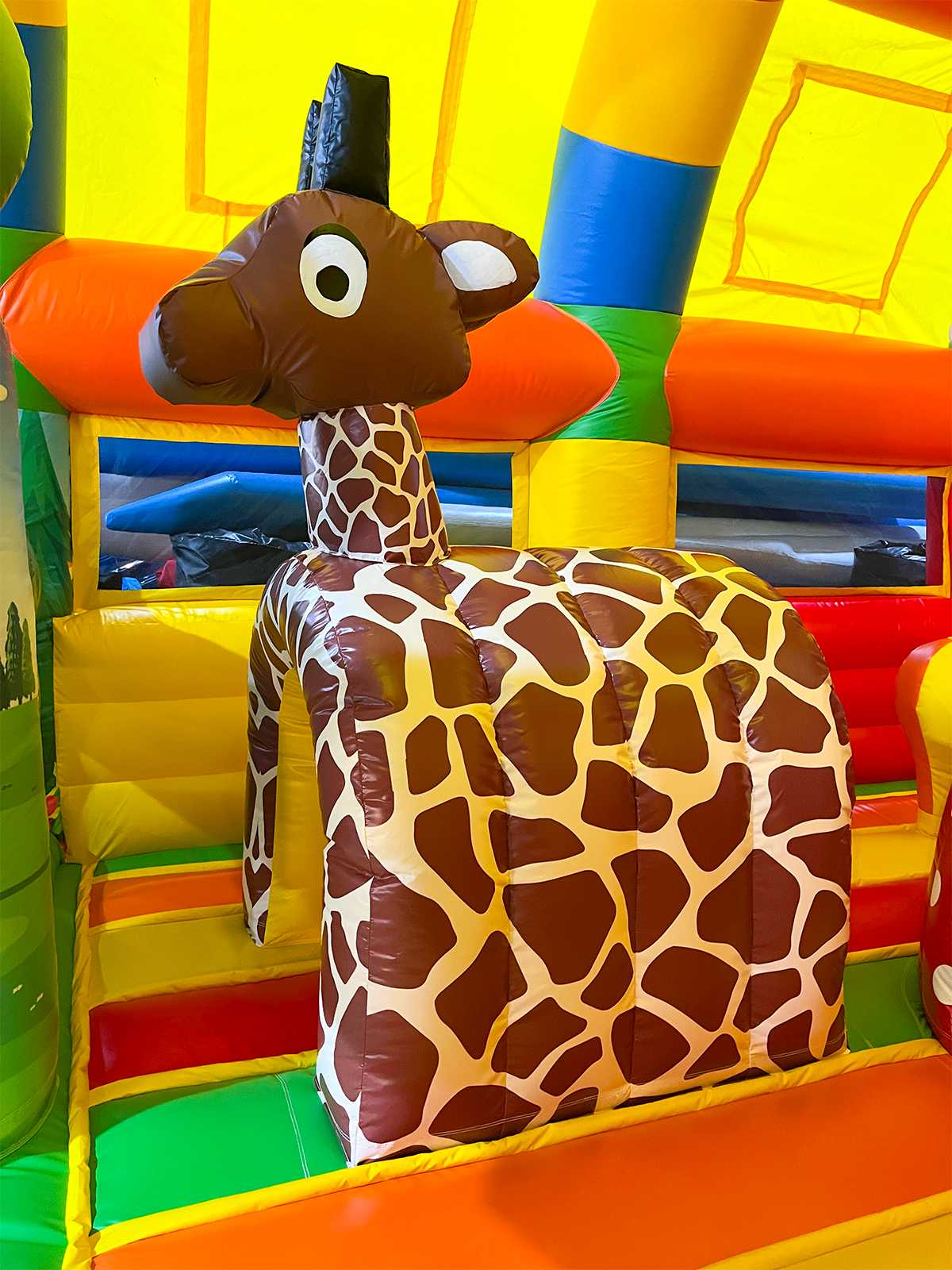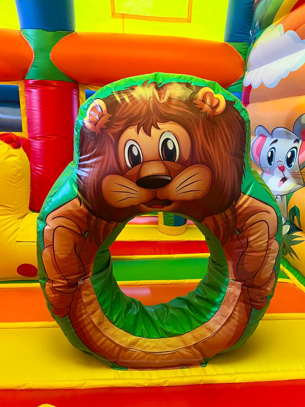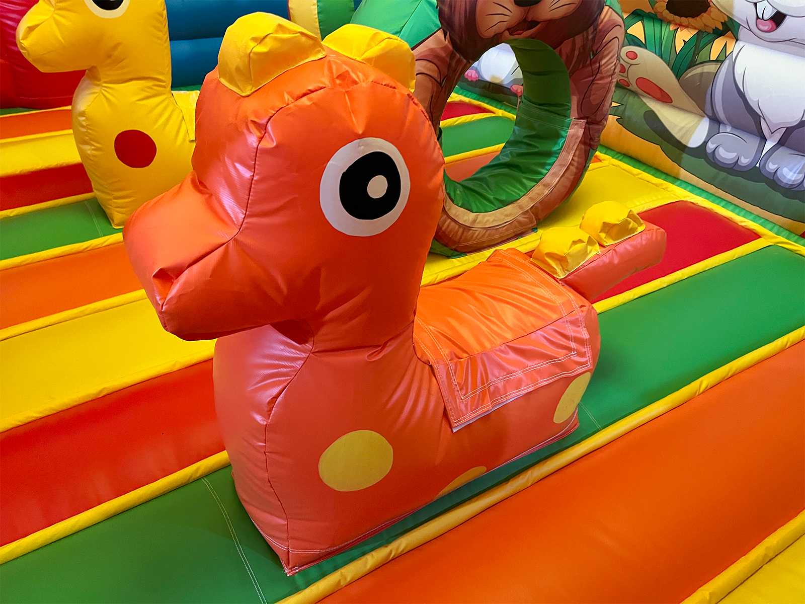 Фигурки обезьян, зебры, жирафа и других персонажей украшают входную часть и внутреннее пространство, создавая живую, сказочную атмосферу. Здесь дети могут прыгать, бегать, преодолевать препятствия и веселиться безопасно. Это место, где энергия детей получает правильный выход, а родители уверены в их безопасности.