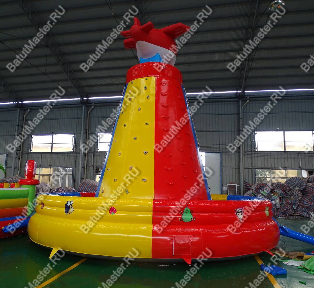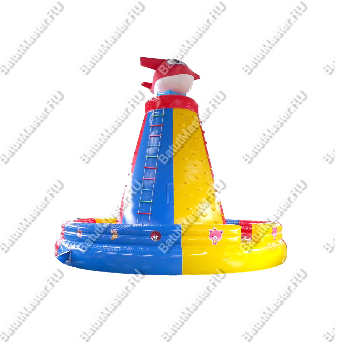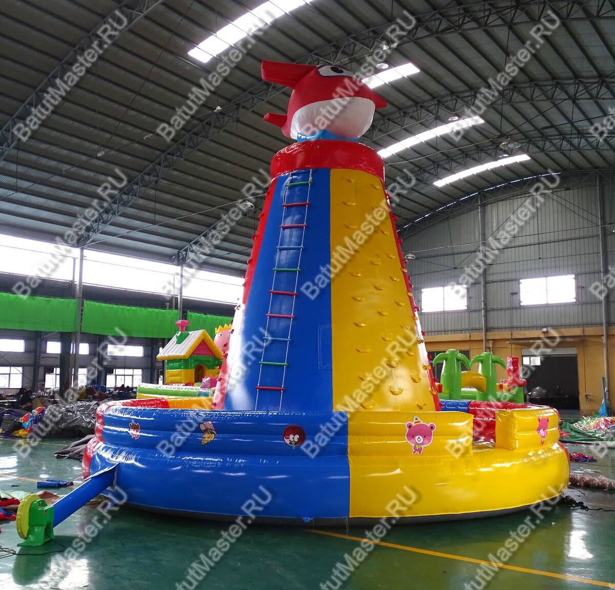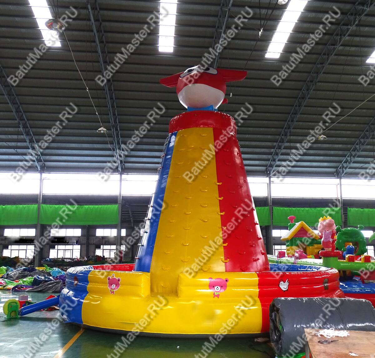 Сам же скалодром имеет зону для приземлений и даже прыжков, а также игровую зону, которая представляет собой, собственно, сам скалодром. Дети смогут попытаться забраться на него, опираясь на надувные выступы, или же могут просто вскарабкаться по специальной лестнице. Так или иначе, но каждый сможет достигнуть одной цели – добраться до красного самолётика.