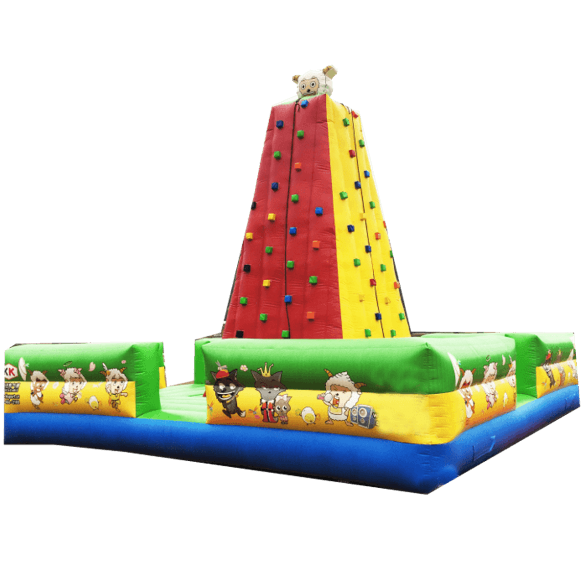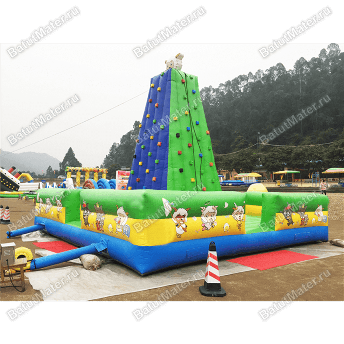 Это действительно выгодный батут, собраться в котором может целая группа детей. По центру его расположена высокая скала из четырех стен в виде пирамиды. Каждая сторона выделена отдельным цветом (синяя, зеленая, красная и желтая), а на вершине установлена мягкая надувная голова овечки. Игровые фигуры здесь почти отсутствуют, но просторный батут позволяет не только учиться лазать по скалам, но и играть в активные игры, фантазировать и развивать воображение.