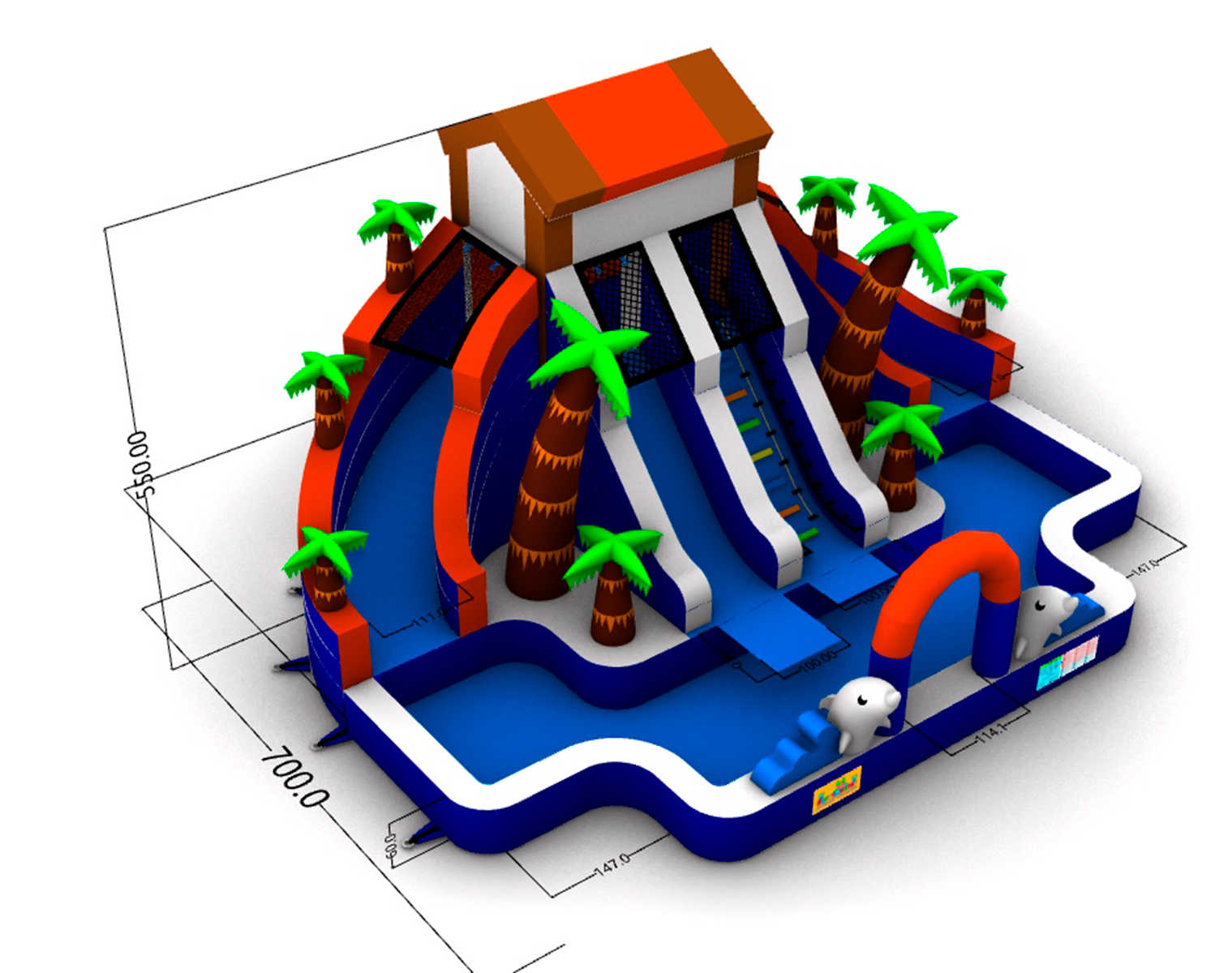 «Домик у моря» — это больше, чем просто надувной батут. Это целый мир веселья, погружающий детей в атмосферу тропических приключений. Дизайн выполнен в морском стиле: дельфины, пальмы, рыбки, водяные арки и сочные цвета создают настроение беззаботного отдыха. Аттракцион моментально становится центром внимания, а его внешний вид не оставляет шансов на равнодушие ни детям, ни взрослым.