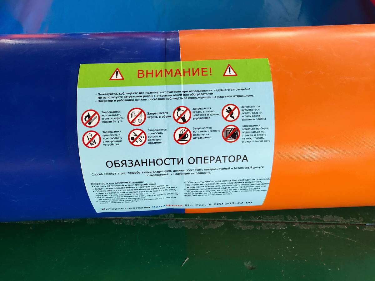Этот бассейн выполнен из армированного непрозрачного ПВХ толщиной 0,9 мм и плотностью 1100 г/м² — один из самых прочных и надёжных материалов в индустрии надувных аттракционов. Все швы выполнены с использованием технологии сварки внахлёст (2,5 см), что обеспечивает максимальную герметичность и устойчивость к разрывам.