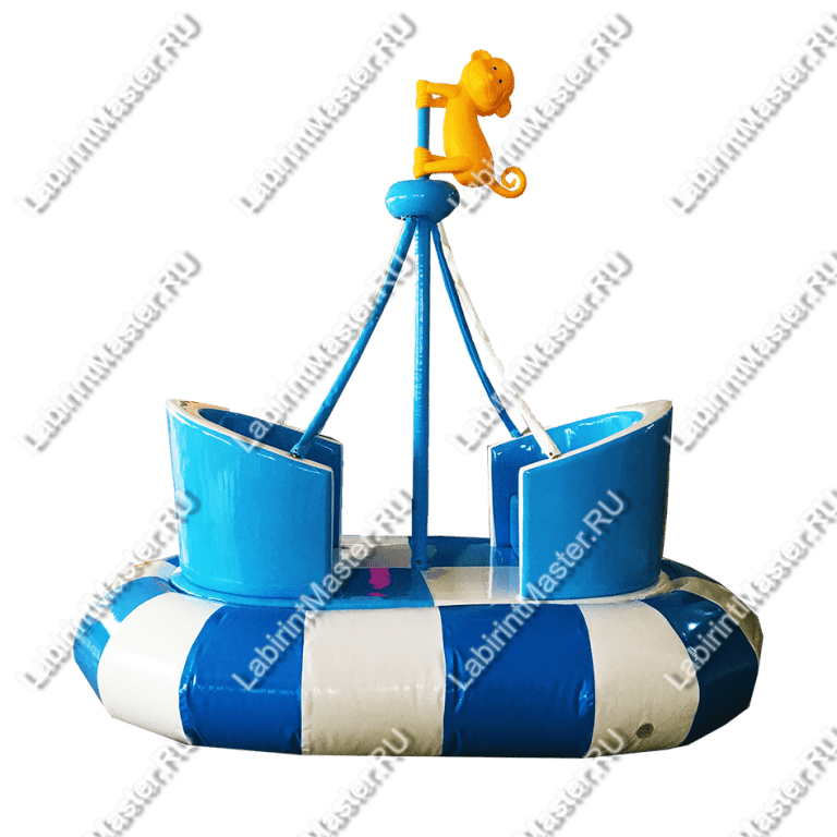Данная качалка отлично впишется в лабиринт морской тематики или тематики джунглей. Имеет всего два цвета – синий и белый, однако главной фишкой качалки является жёлтая радостная обезьянка, что сидит наверху «корабля». Именно этот элемент привлечёт внимание посетителей, поскольку он выделяется на общем фоне спокойных оттенков.