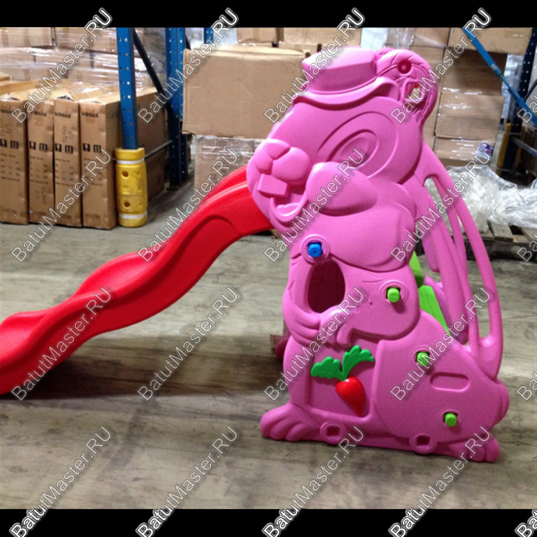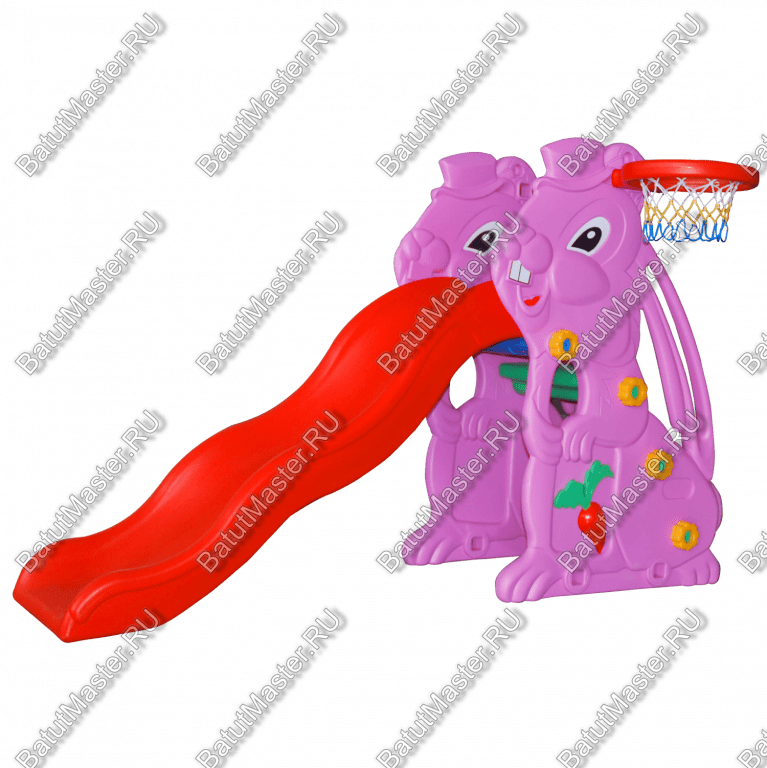 Детская горка «Белочка – безопасное и привлекательное для детей игровое оборудование, которое может быть установлено, как в помещении, так и внутри игрового лабиринта. Две боковые опоры в этой комплектующей изготовлены в виде белочек, а между ними закреплена сама горка. С тыльной стороны горки имеются ступеньки для восхождения малышей. Там же изготовлены поручни из продолговатых ушей. На одной из боковых опор конструкции закреплено кольцо с сеткой аналогичное баскетбольной корзине. В него можно бросать мячики, шарики небольшого размера. По горке, имеющей достаточные бортики, малыши могут безопасно съезжать вниз без посторонней помощи и снова подниматься на горку.