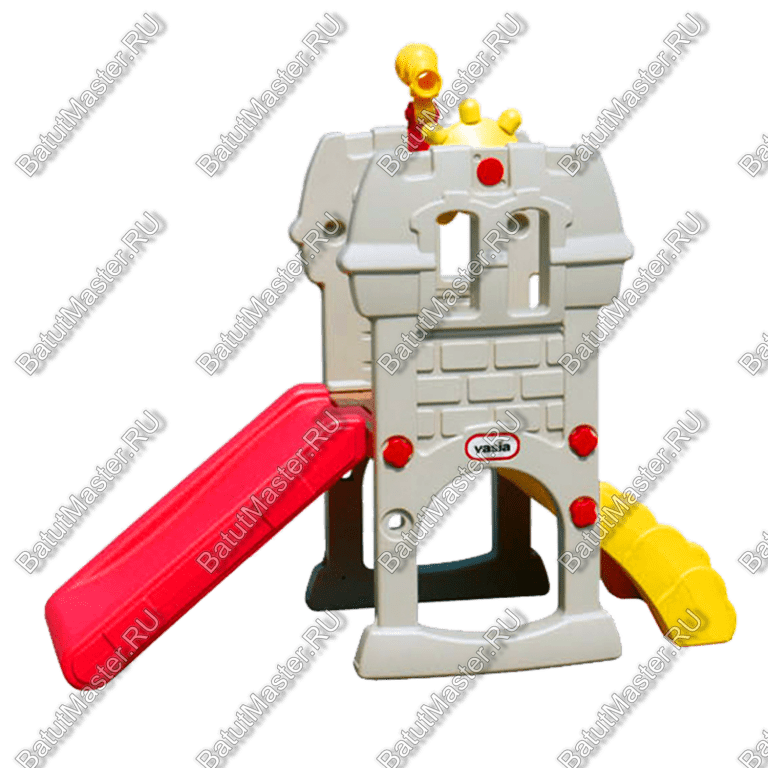 С одной стороны это обычная детская горка, которая имеет невысокую безопасную лестницу и ровный склиз. С другой стороны, это целая наблюдательная площадка со штурвалом и подзорной трубой, которая напоминает крепостную башню. Наличие штурвала может даже натолкнуть детей на мысль, что они находятся на борту исторического военного крейсера. В любом случае, данное игровое оборудование представляет для детей особенный интерес и может считаться даже «спортивным оборудованием». Материал горки полностью безопасный для детских игр (литая пластмасса) и не имеет острых соединений или узлов.