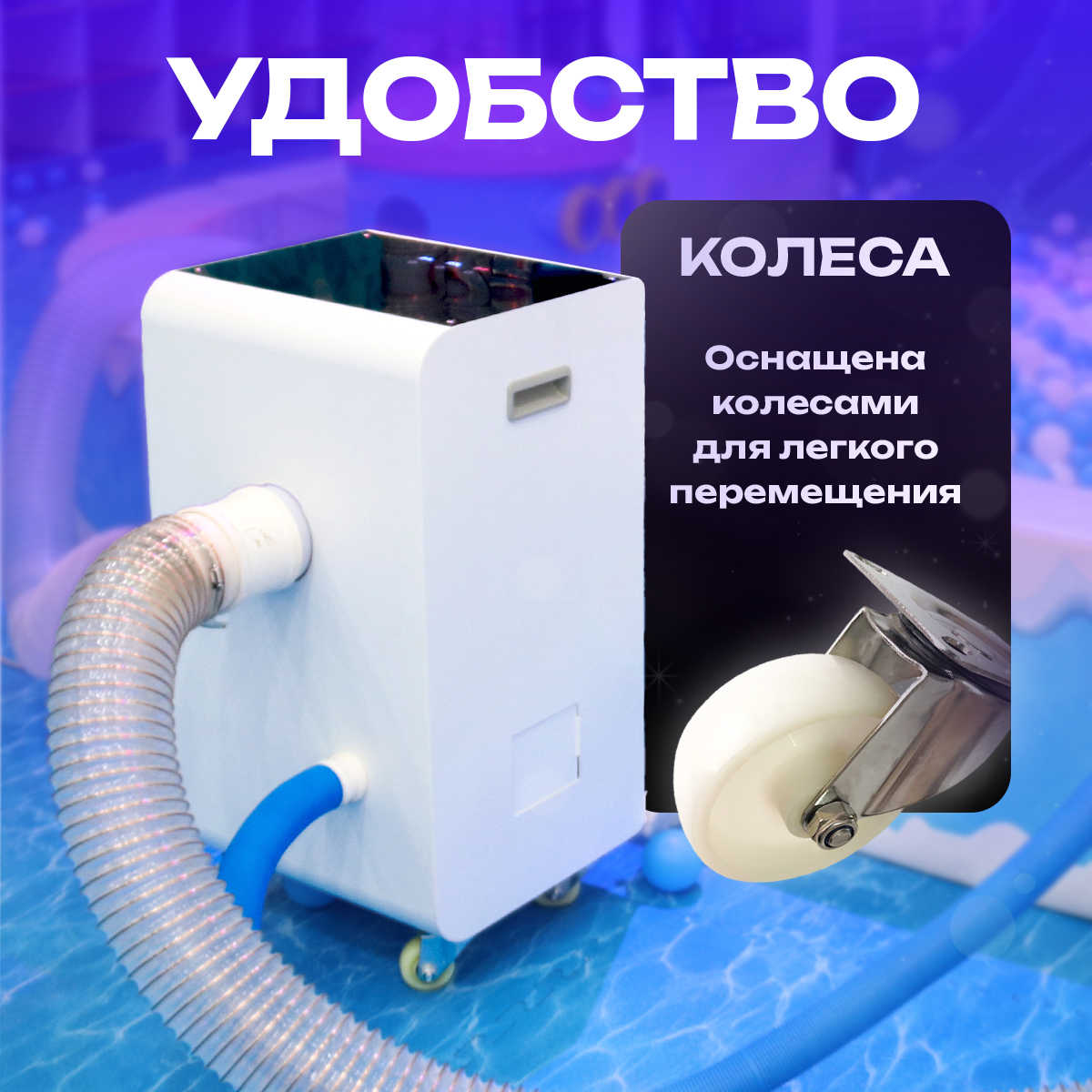 • Дезинфекция и чистота сухого бассейна без дополнительных затрат на услуги профессиональных уборщиков.