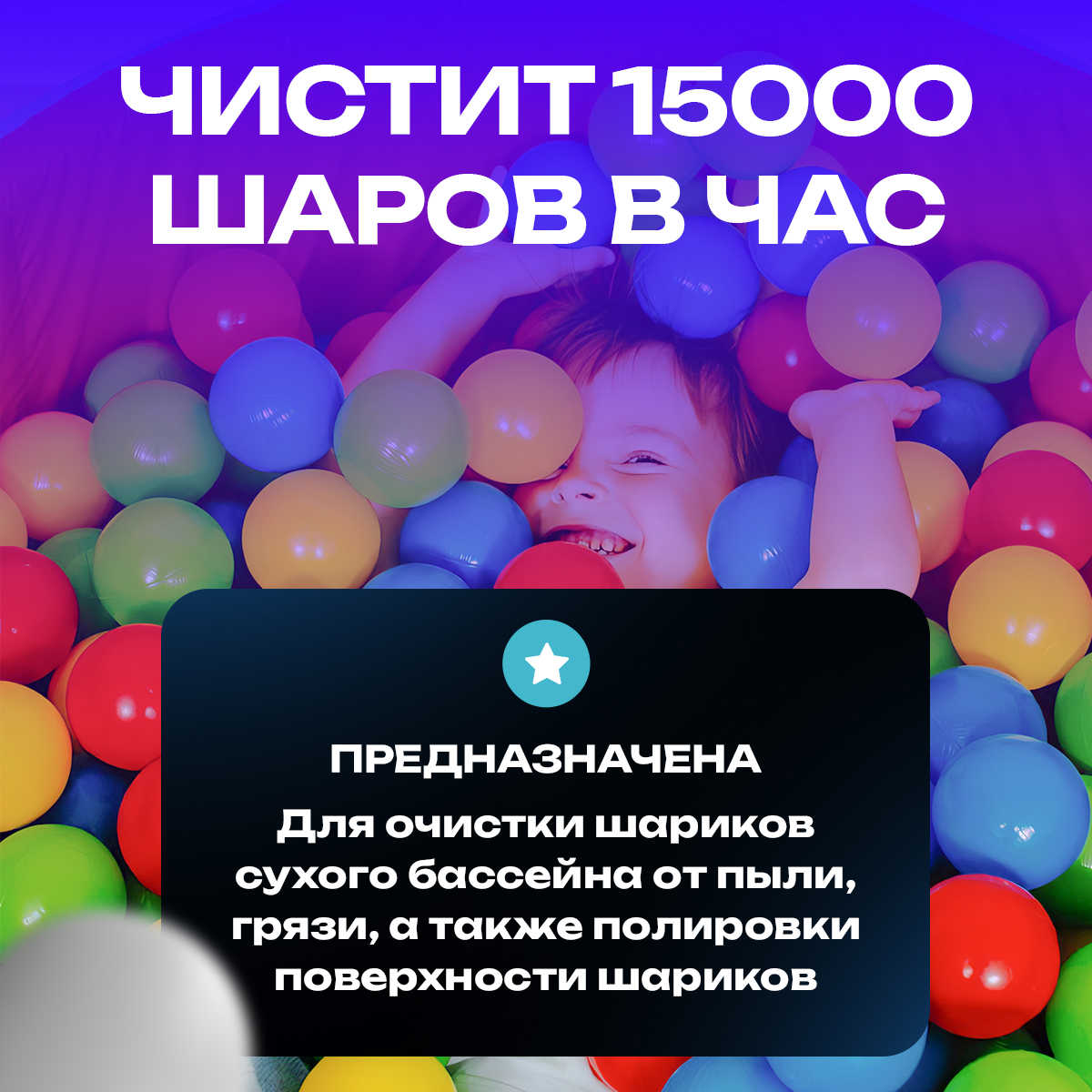 Небольшая легкая машина обладает высокой мощностью, подходит для чистки крупных сухих бассейнов. Для быстрой и эффективной работы важно чтобы чистые шары не перемешивались с грязными.