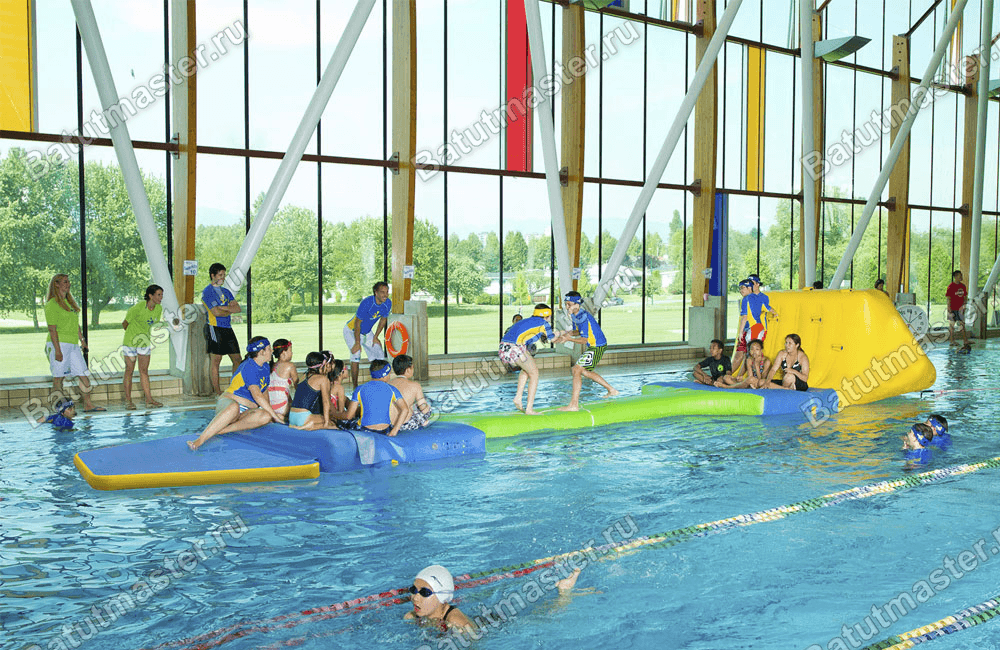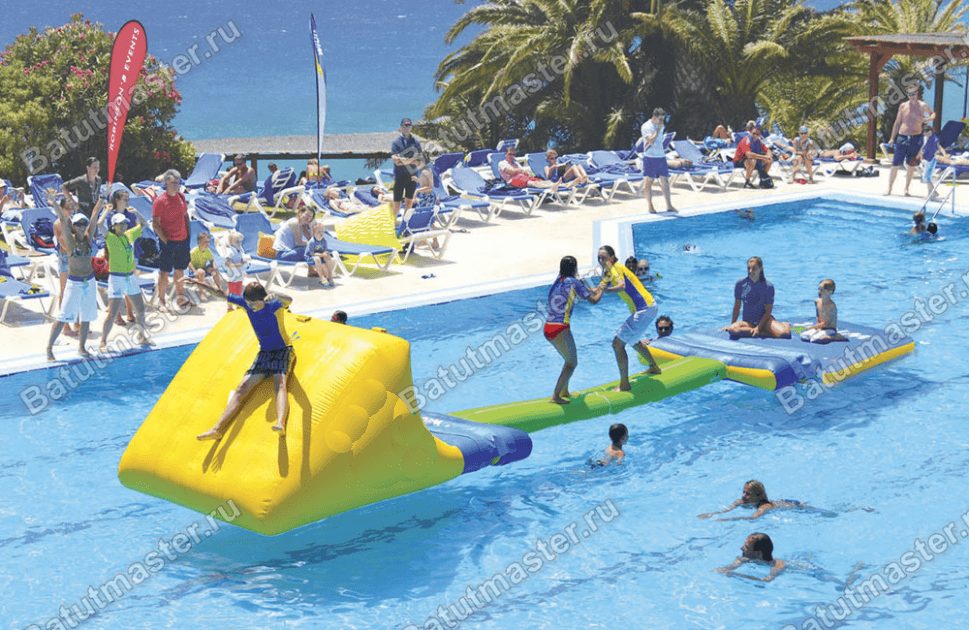 Это уникальное сооружение водных аттракционов, состоящее из нескольких модулей. Надувные модули собираются в любой последовательности, создавая персональный водный комплекс.
