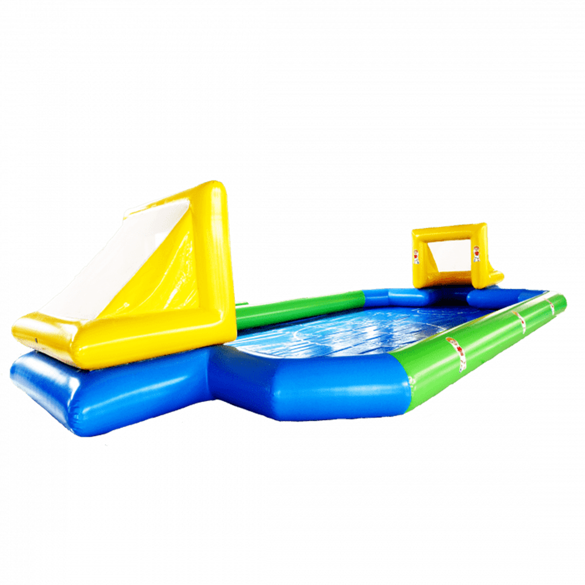 Надувной коммерческий бассейн для футбола - это объемная конструкция, выполненная из прочного материала ПВХ. Оно предназначено для игр в футбол или водное поло. Такой аттракцион непременно понравится детям, ведь бегать с мячом по воде всей командой куда интереснее. Вокруг брызги, радость и тяга к победе. По краям надувной батут для футбола окружен высокими бортами, а по двум сторонам имеются высокие ворота для мяча, позволяющие совмещать различные игры с мячом.