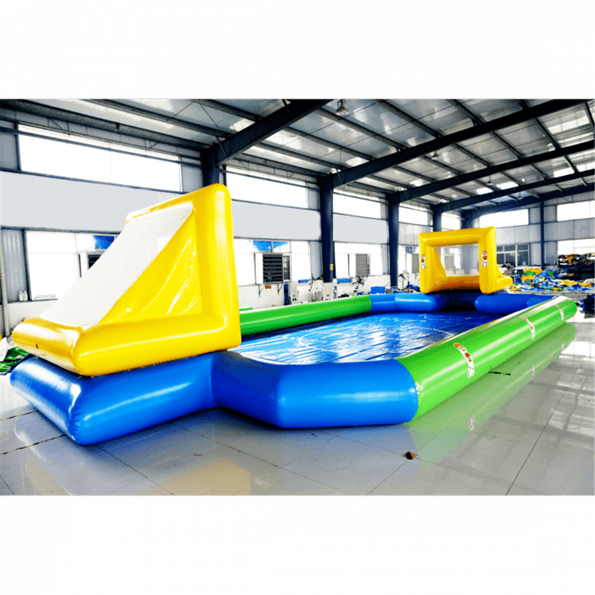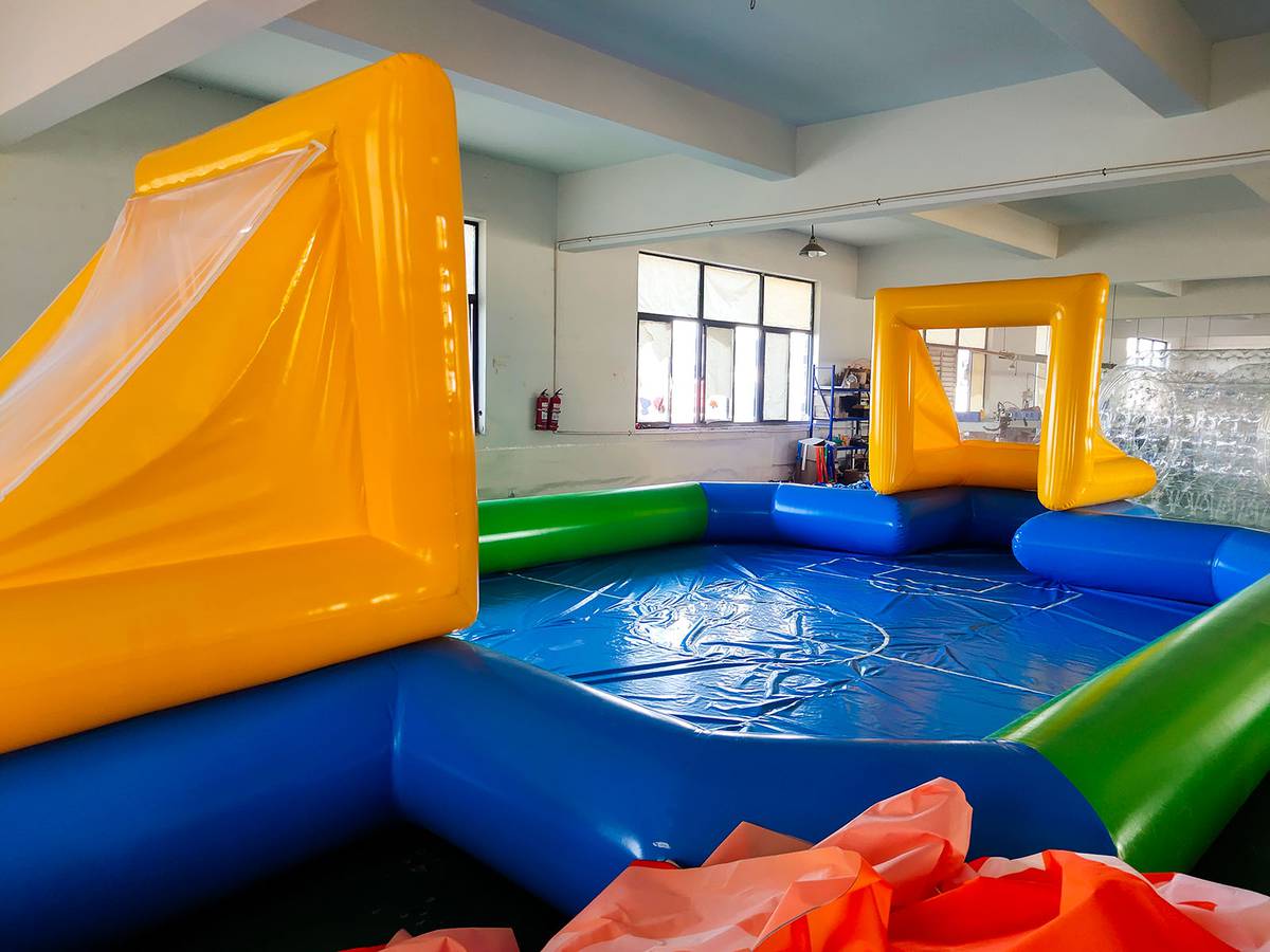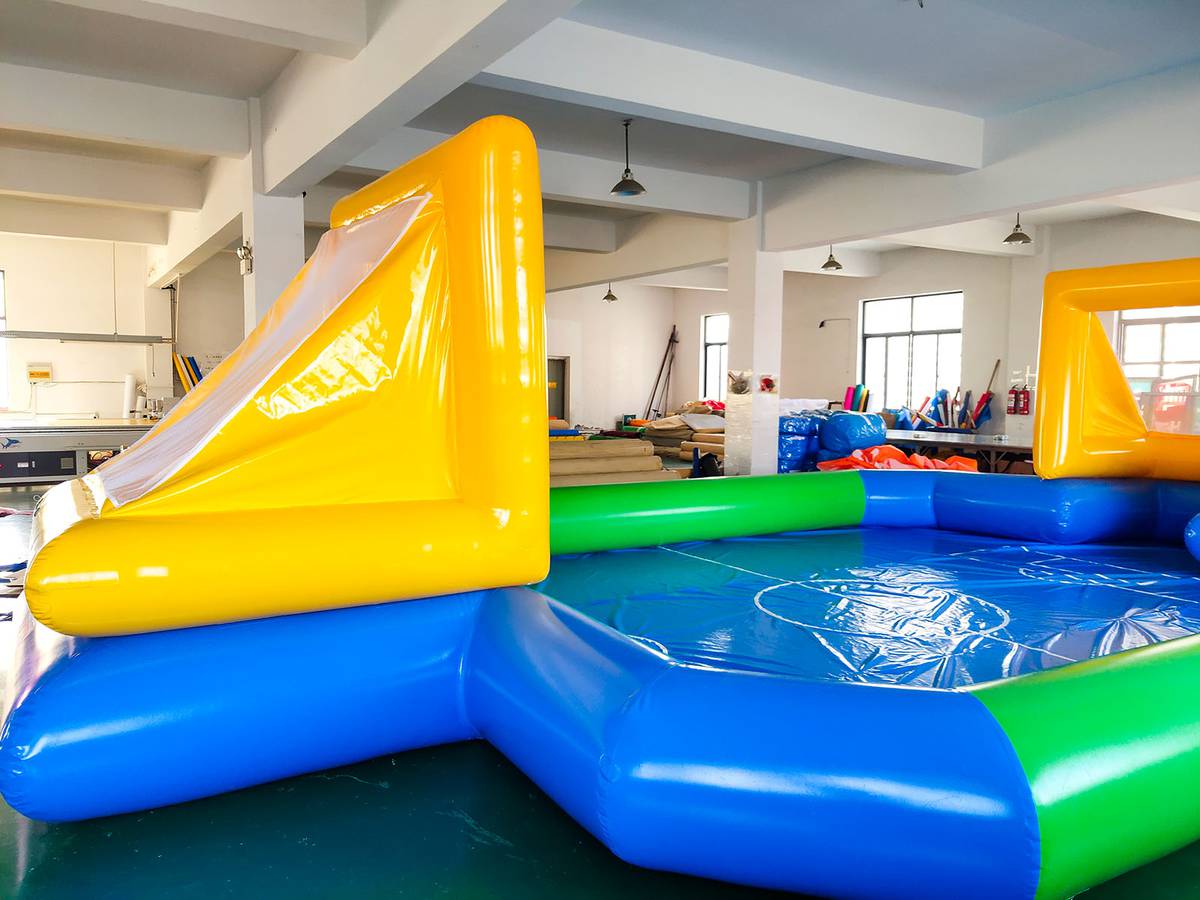 Совмещать игры в футбол и с плаванием – это очень необычно и увлекательно. Это вдвойне положительно воздействует на организм. В первую очередь плавание укрепляет мышцы, развивает выносливость, а если двигаться еще и с мячом в воде, то это в несколько раз формирует физическую силу и координацию движений. Это особенно важно для деток в период роста. Для этого как нельзя лучше подходит коммерческий надувной бассейн для бизнеса с футбольными воротами.