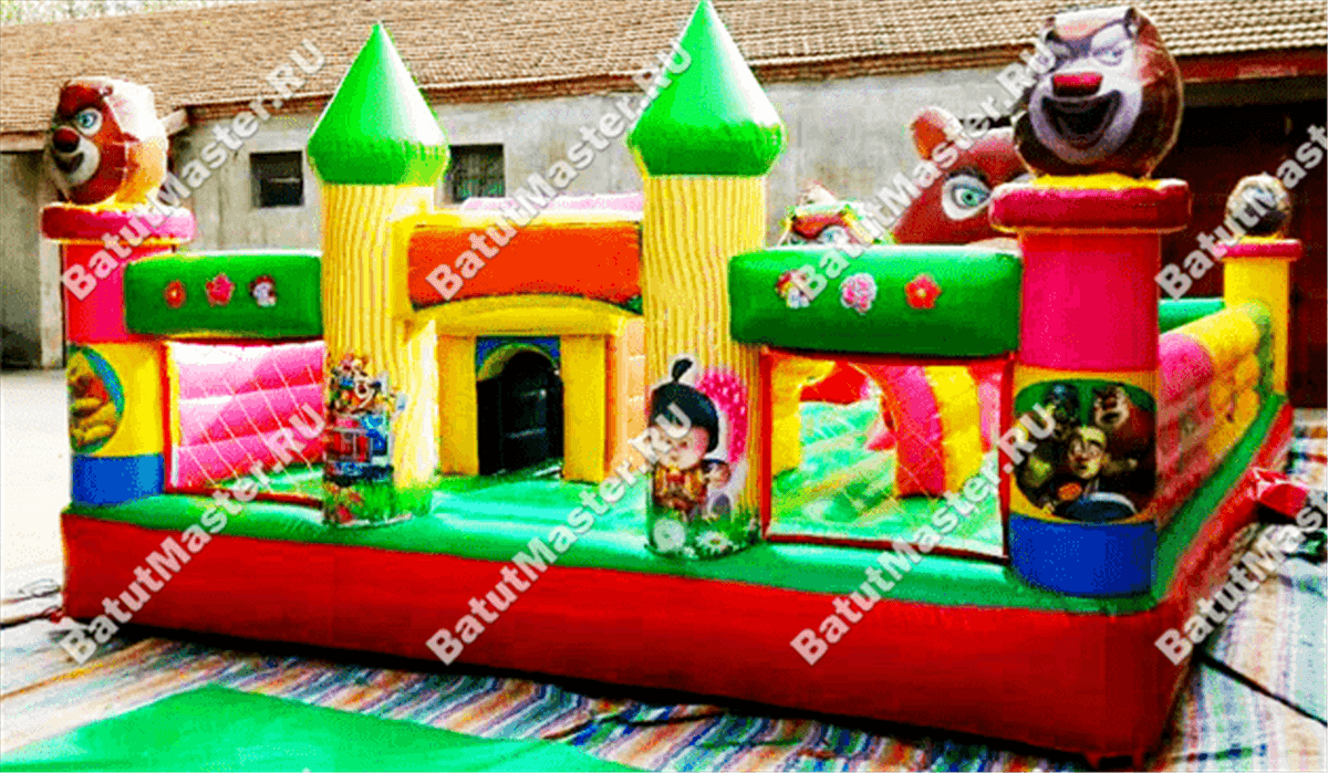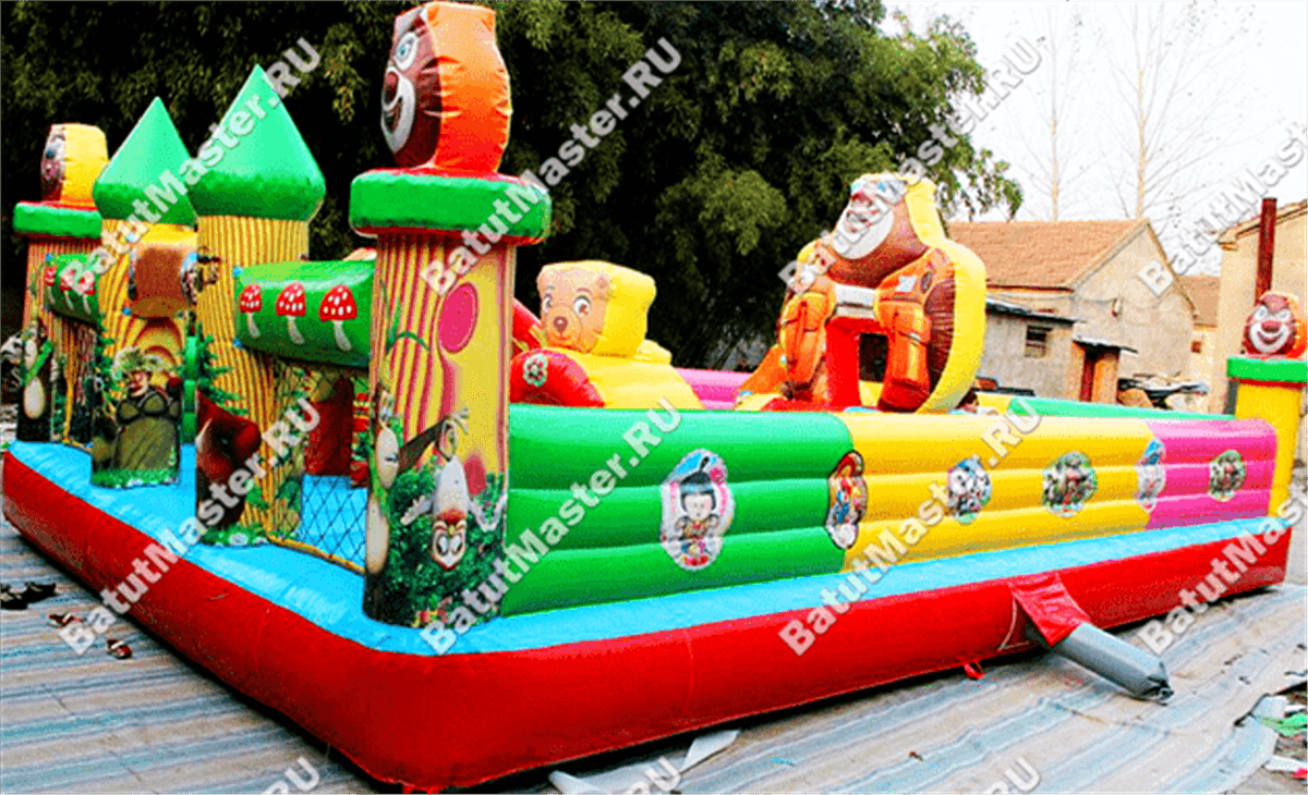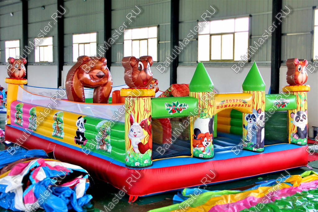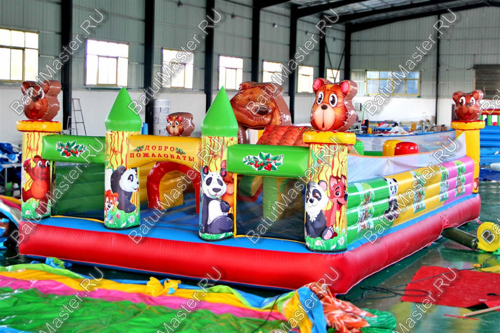 За горкой-уточкой на уличном батуте помещается еще целая масса надувных животных, вместе с которыми будет веселее прыгать, играть и бегать. Нельзя сказать, что эта конструкция направлена сугубо на детей самого младшего возраста, попрыгать и поиграть здесь могут абсолютно все. Но для малышей здесь максимально комфортно и не страшно, таким свойством отличаются далеко не все батуты.