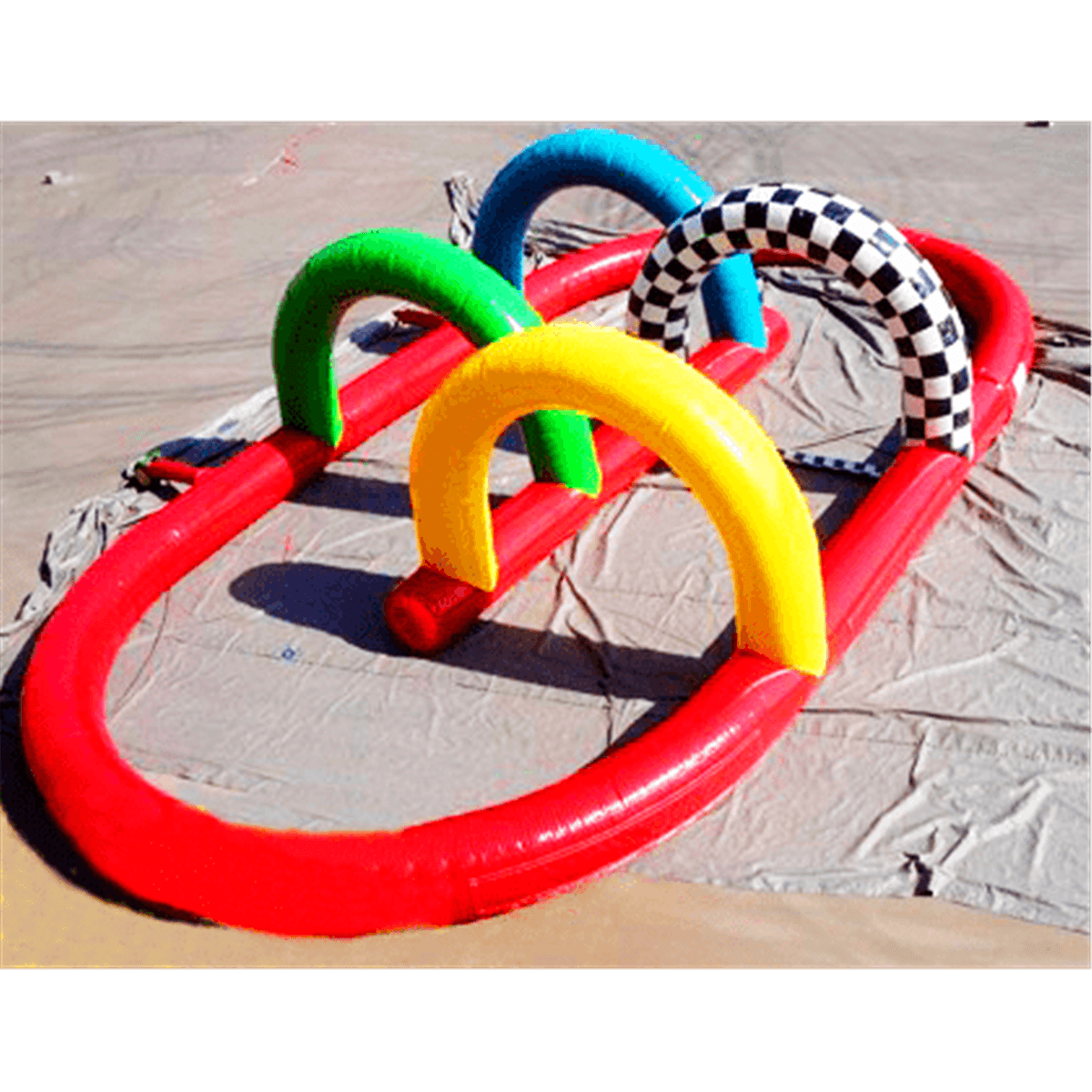 Надувная трасса представляет собой мягкое ограждение с арками и поворотами для детских веломобилей и электромобилей. Такого плана надувная игровая площадка позволяет разместить сразу несколько электрокаров.
