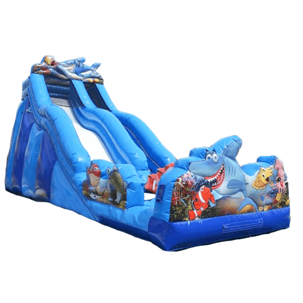«Красивые акулы» — это эффектная и функциональная надувная горка, которая станет настоящей изюминкой вашего развлекательного бизнеса. Выполненная в насыщенных синих тонах и украшенная дружелюбными морскими персонажами, она мгновенно приковывает внимание и вызывает желание прокатиться даже у самых скромных малышей.