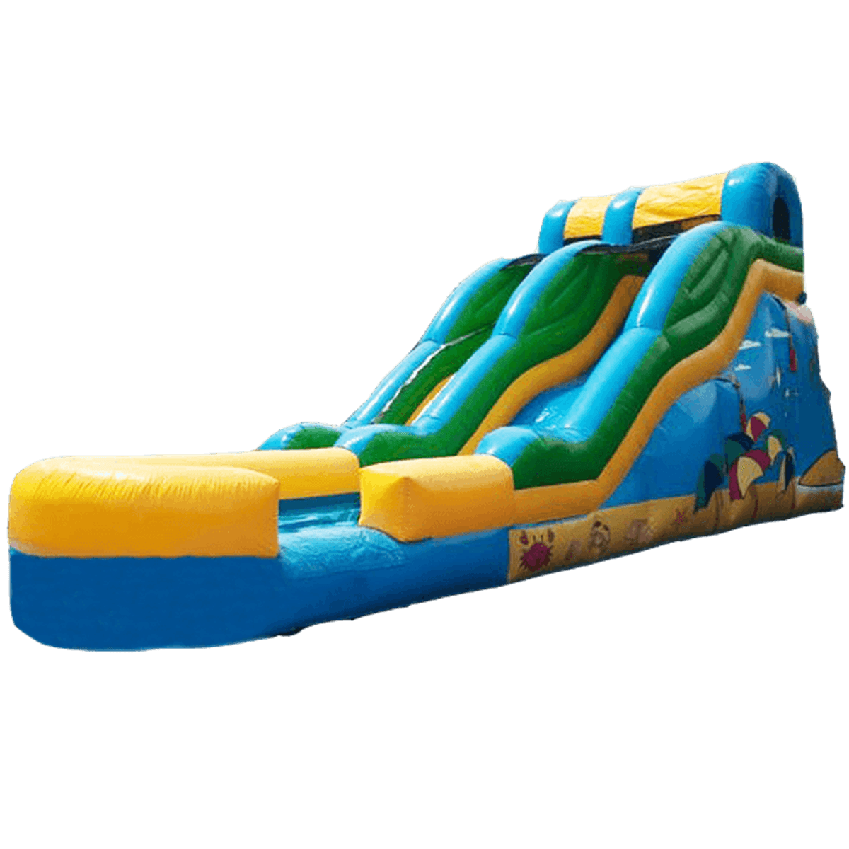 Надувная водная горка «Морской спуск» 10*4,5*4,5 м — это динамичный и зрелищный водный аттракцион, способный не просто украсить любое пространство, но и стать настоящим магнитом для детей и их родителей. Горка рассчитана для установки на земле и подходит как для сухого использования, так и вблизи искусственных водоемов. Благодаря оригинальной морской тематике с изображениями рыбок, пляжных зонтов и волн, горка моментально вызывает ассоциации с летом, весельем и беззаботным отдыхом.