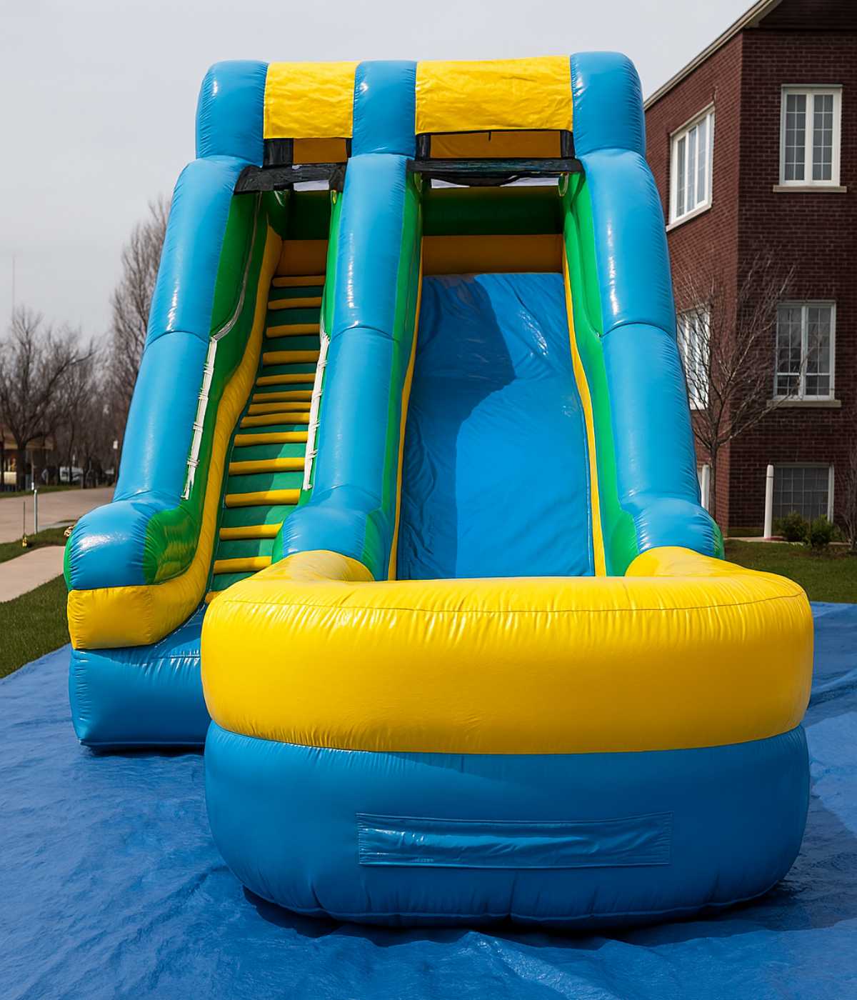 Изготовленная из усиленного армированного ПВХ высокой плотности (от 690 до 1100 г/м²), горка сохраняет свои эксплуатационные качества даже при интенсивной нагрузке, попадании воды и длительном воздействии солнечных лучей.