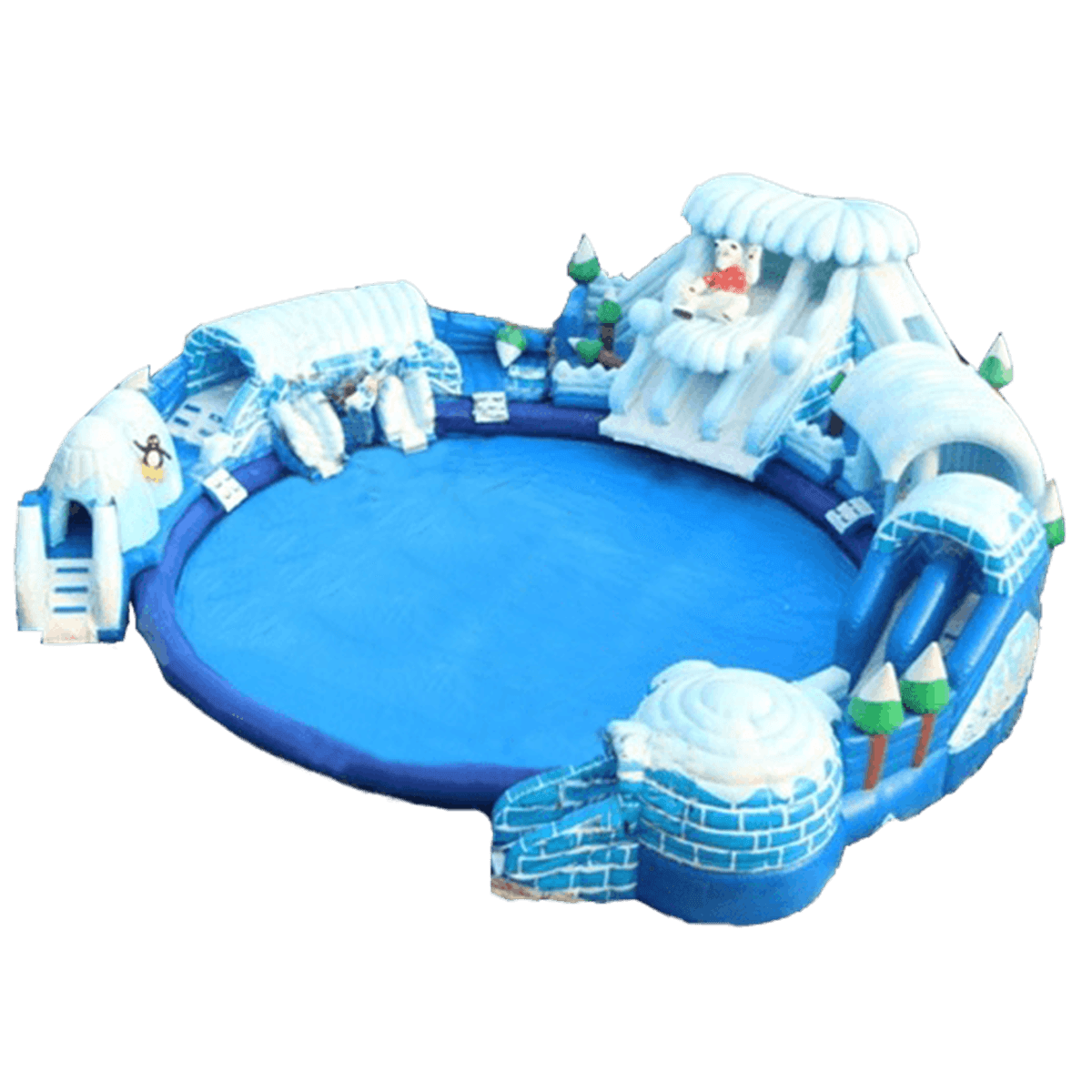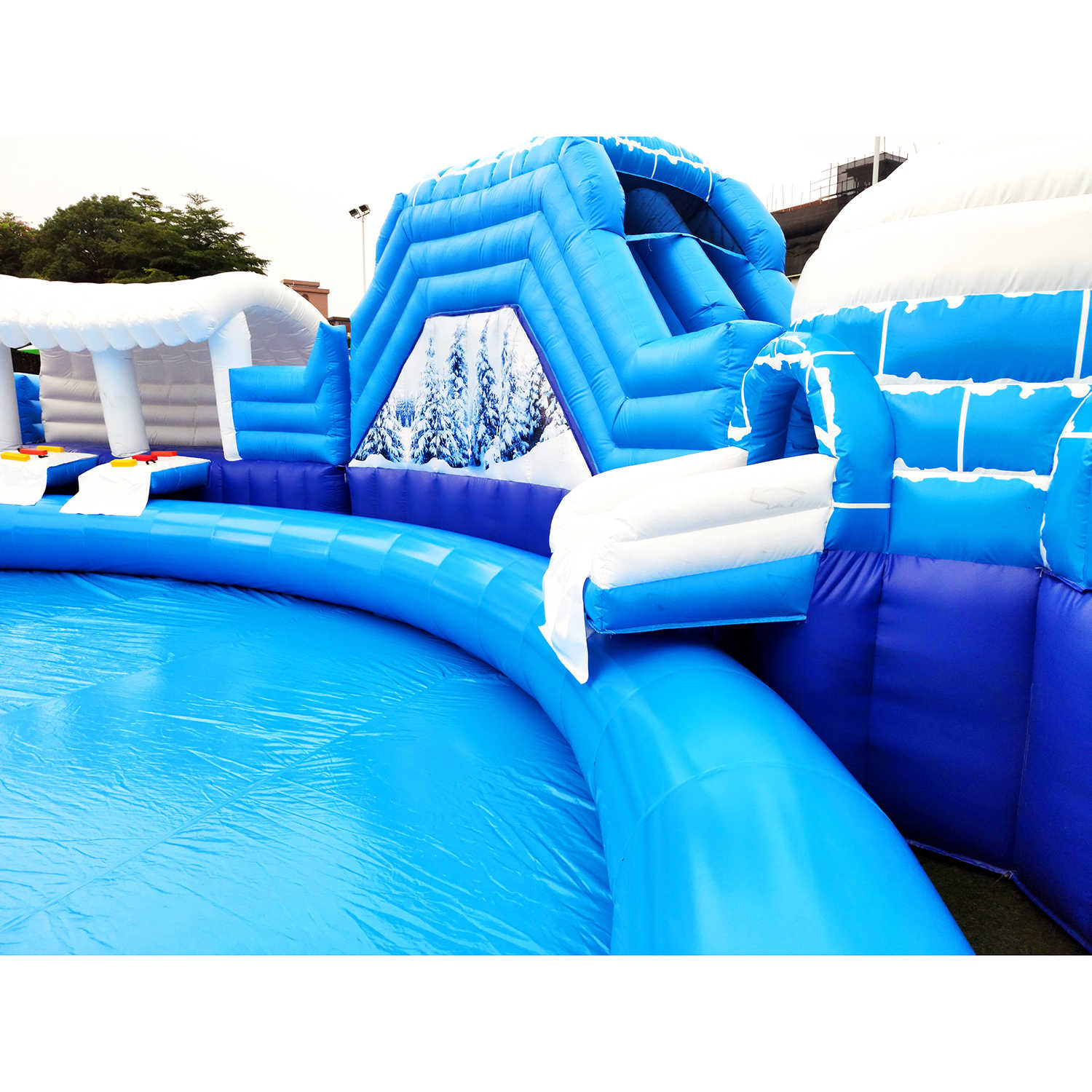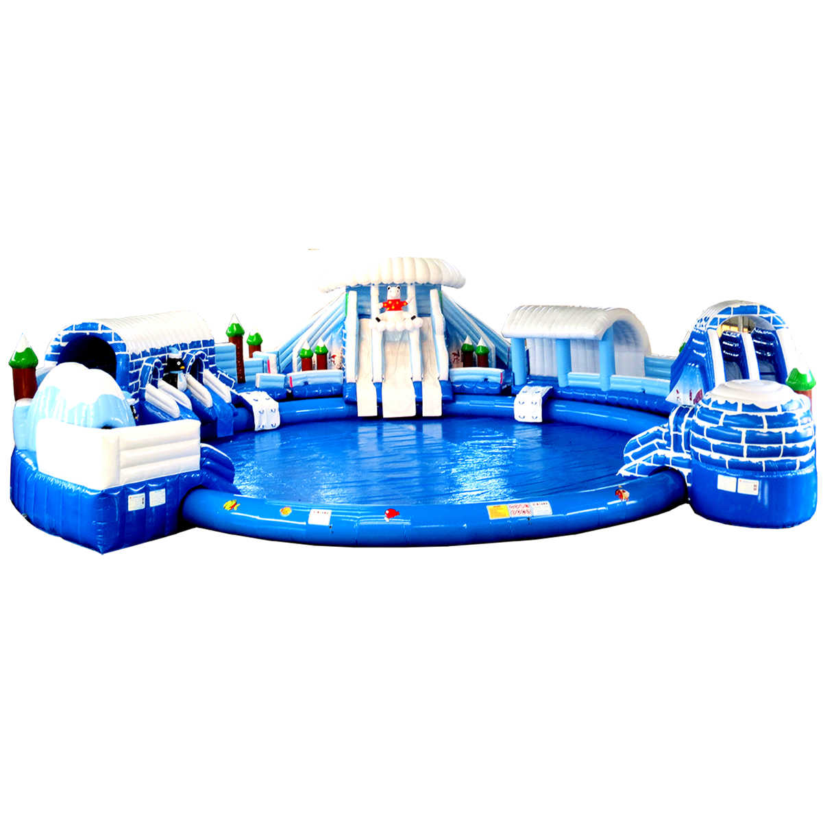 Аквапарк рассчитан на одновременное использование до 61 человека, благодаря чему он идеально подходит для парков развлечений, пляжей, детских центров, курортов, гостиничных комплексов и загородных баз отдыха. Аттракцион создан из усиленного армированного ПВХ с плотностью до 1100 г/м² и толщиной до 0,9 мм. Это гарантирует высокую износостойкость, устойчивость к влаге, перепадам температуры (от 0 до +65 °C) и интенсивным нагрузкам.