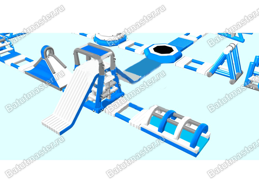 Это уникальное сооружение водных аттракционов, состоящее из нескольких модулей. Надувные модули собираются в любой последовательности, создавая персональный водный комплекс.