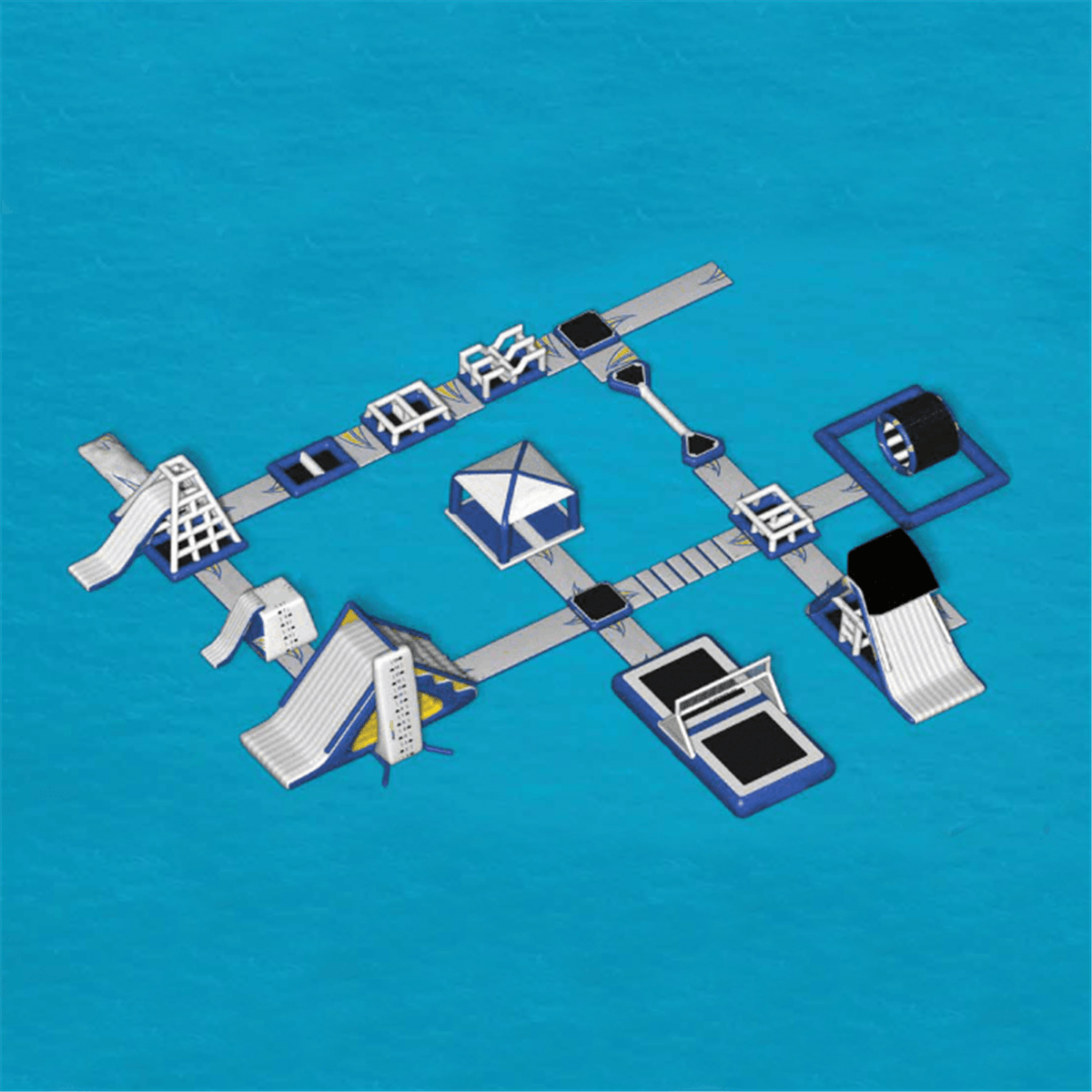 Это уникальное сооружение водных аттракционов, состоящее из нескольких модулей. Надувные модули собираются в любой последовательности, создавая персональный водный комплекс.