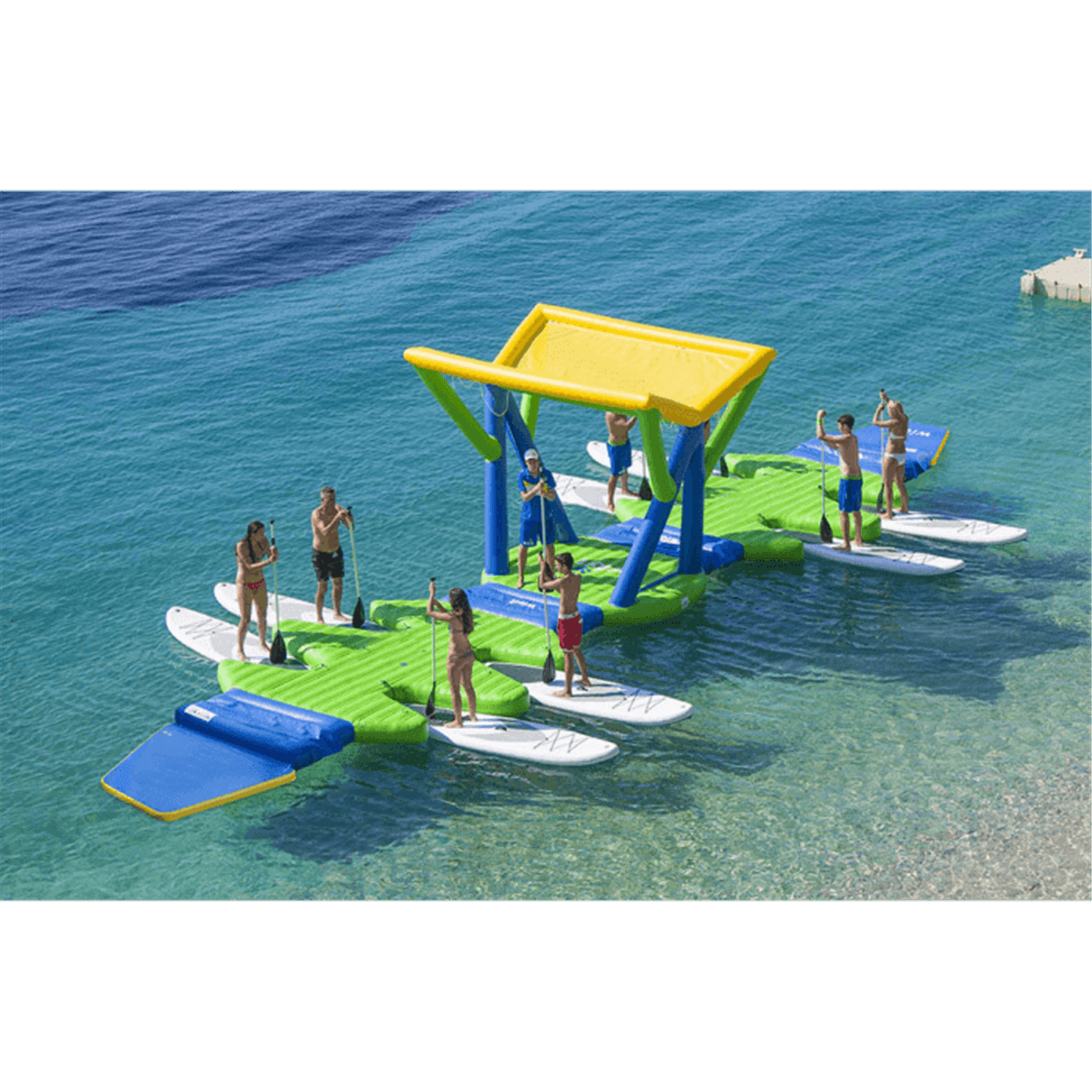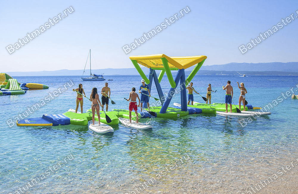 Модуль водного парка «Док-станция», 16×4×2 м — это современное решение для организации водного досуга и создания уникальных зон в аквапарках и зонах отдыха. Конструкция выполнена из усиленного армированного ПВХ высокой плотности, что обеспечивает её надежность и долгий срок службы даже при интенсивной эксплуатации. Яркое сочетание зелёного, синего и жёлтого цветов сразу делает модуль центром притяжения и позволяет легко интегрировать его в любую водную инфраструктуру.