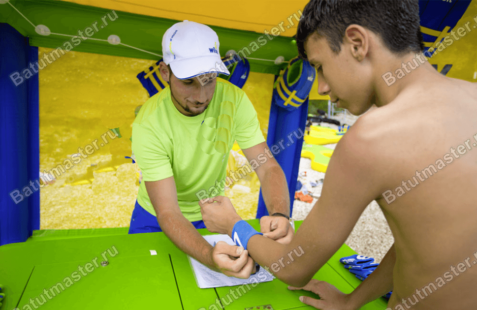 Элемент аквапарка «Палатка» предназначен для спокойных игр, общения и отдыха, что делает его абсолютно безопасным даже для детей. Минимальная глубина воды для установки — 1,7 м.