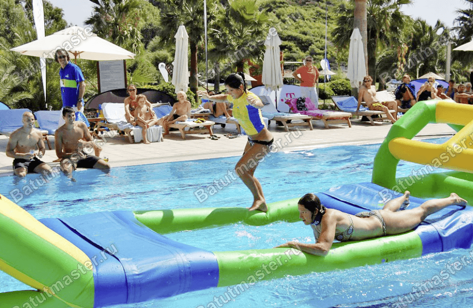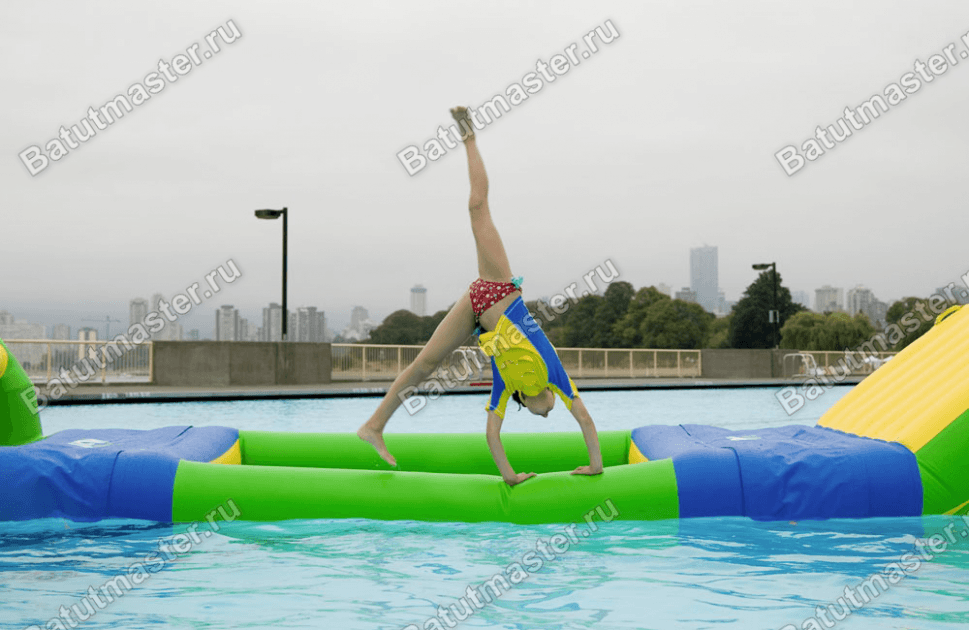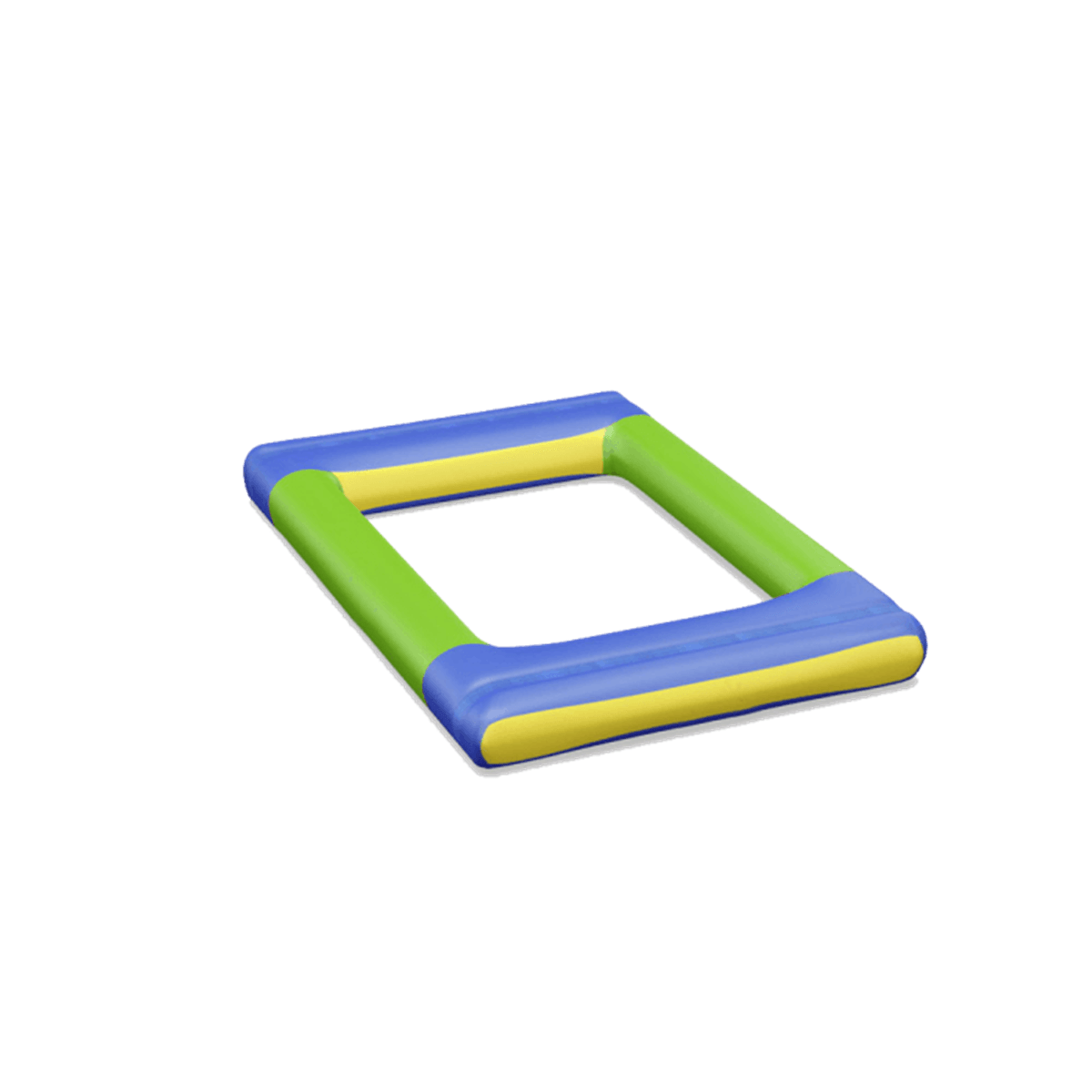 Элемент аквапарка «Пруд» — это соединительный водный модуль, выполненный в виде квадратной рамки, внутри которой образуется небольшая водная зона. Он предназначен для создания связующих участков между активными элементами аквапарка и отлично подходит для балансирования, прыжков или коротких передышек между препятствиями.