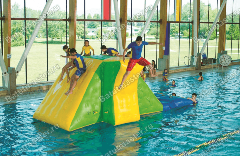 Размер 5×4×2 м позволяет установить элемент в больших аквапарках, пляжных зонах и водоёмах с достаточной глубиной. Он одинаково подходит и для детских, и для взрослых зон отдыха, создавая атмосферу веселья и соревнования.