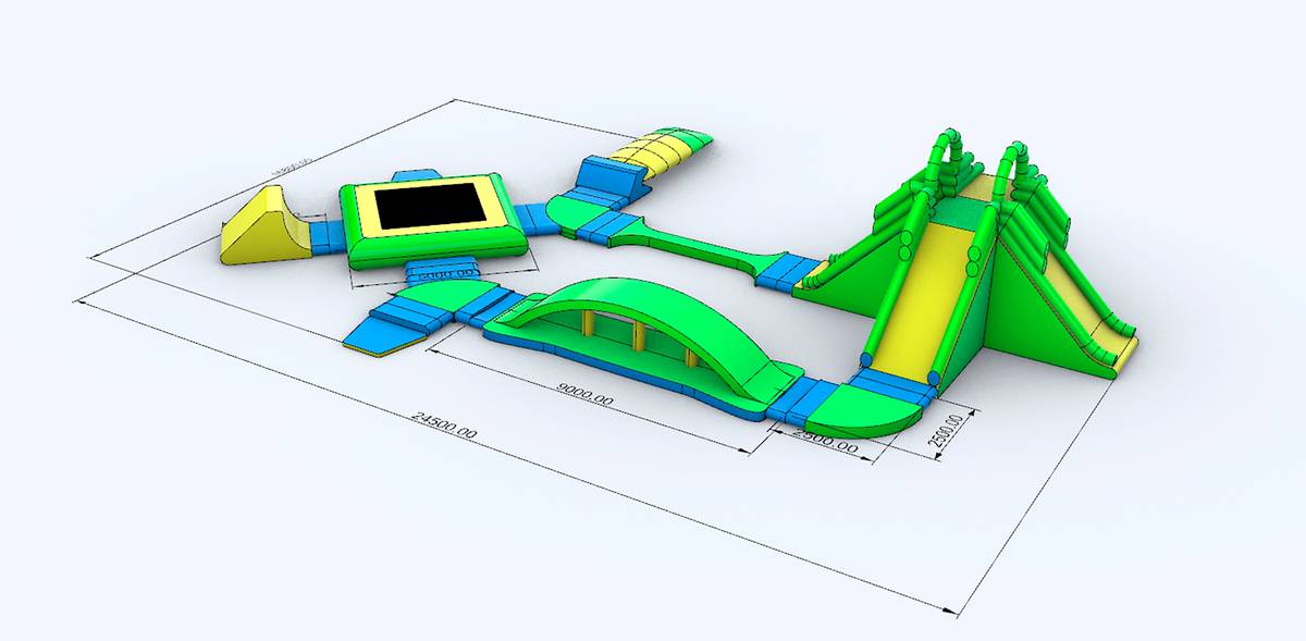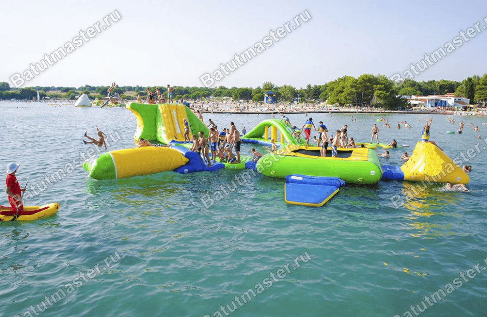 Это уникальное сооружение водных аттракционов, состоящее из нескольких модулей. Надувные модули собираются в любой последовательности, создавая персональный водный комплекс.