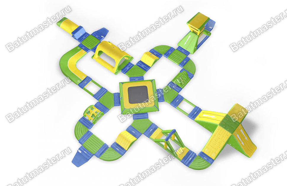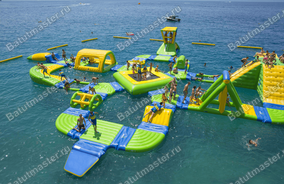 Это уникальное сооружение водных аттракционов, состоящее из нескольких модулей. Надувные модули собираются в любой последовательности, создавая персональный водный комплекс.