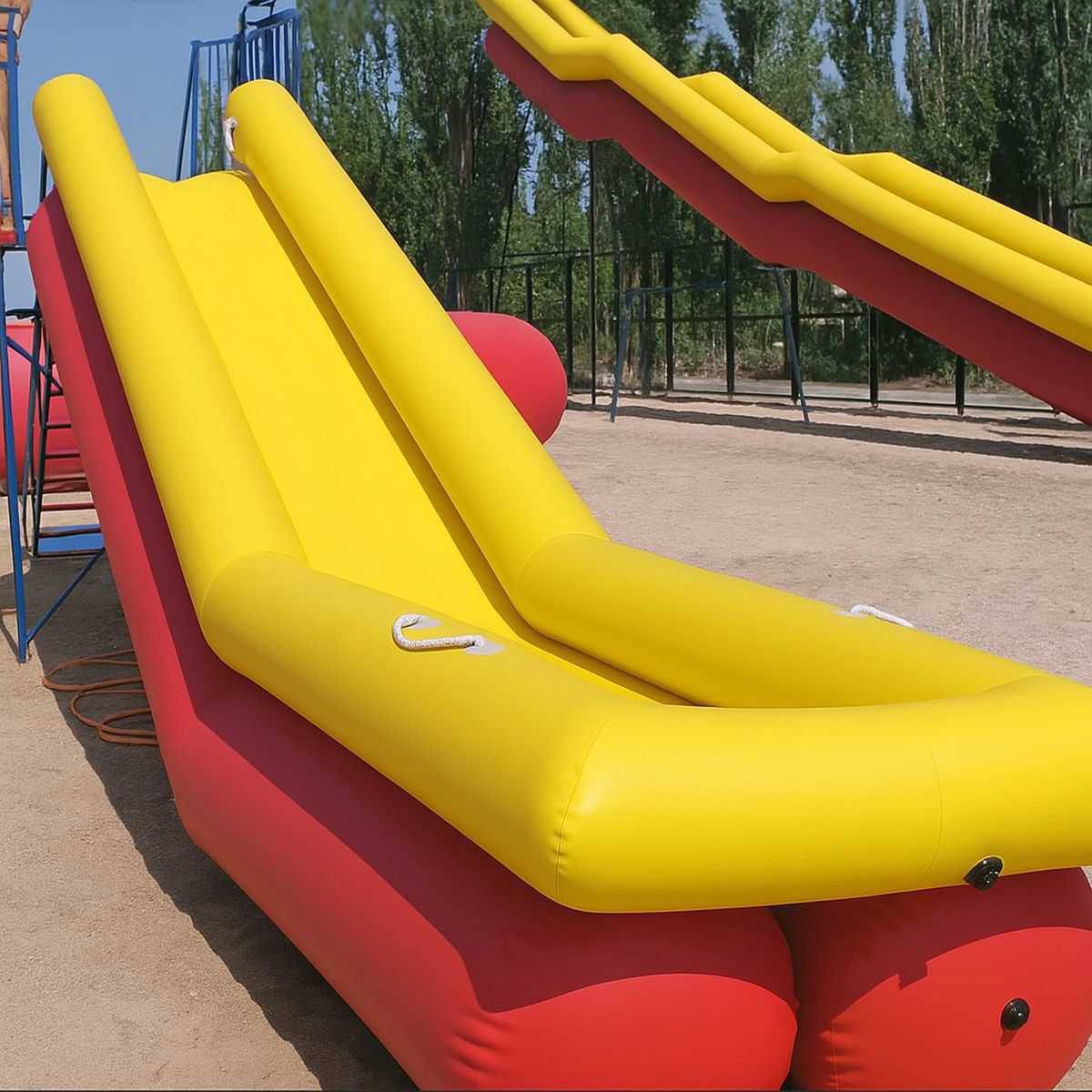 Надувная водная горка «Всплеск эмоций» — это аттракцион, который создан не только для развлечений, но и для бизнеса с высокой окупаемостью. Благодаря яркому дизайну (сочетание насыщенного жёлтого и красного), герметичной конструкции и внушительным размерам — 10x2.5x7 м, она сразу привлекает внимание и выделяется на любой площадке.