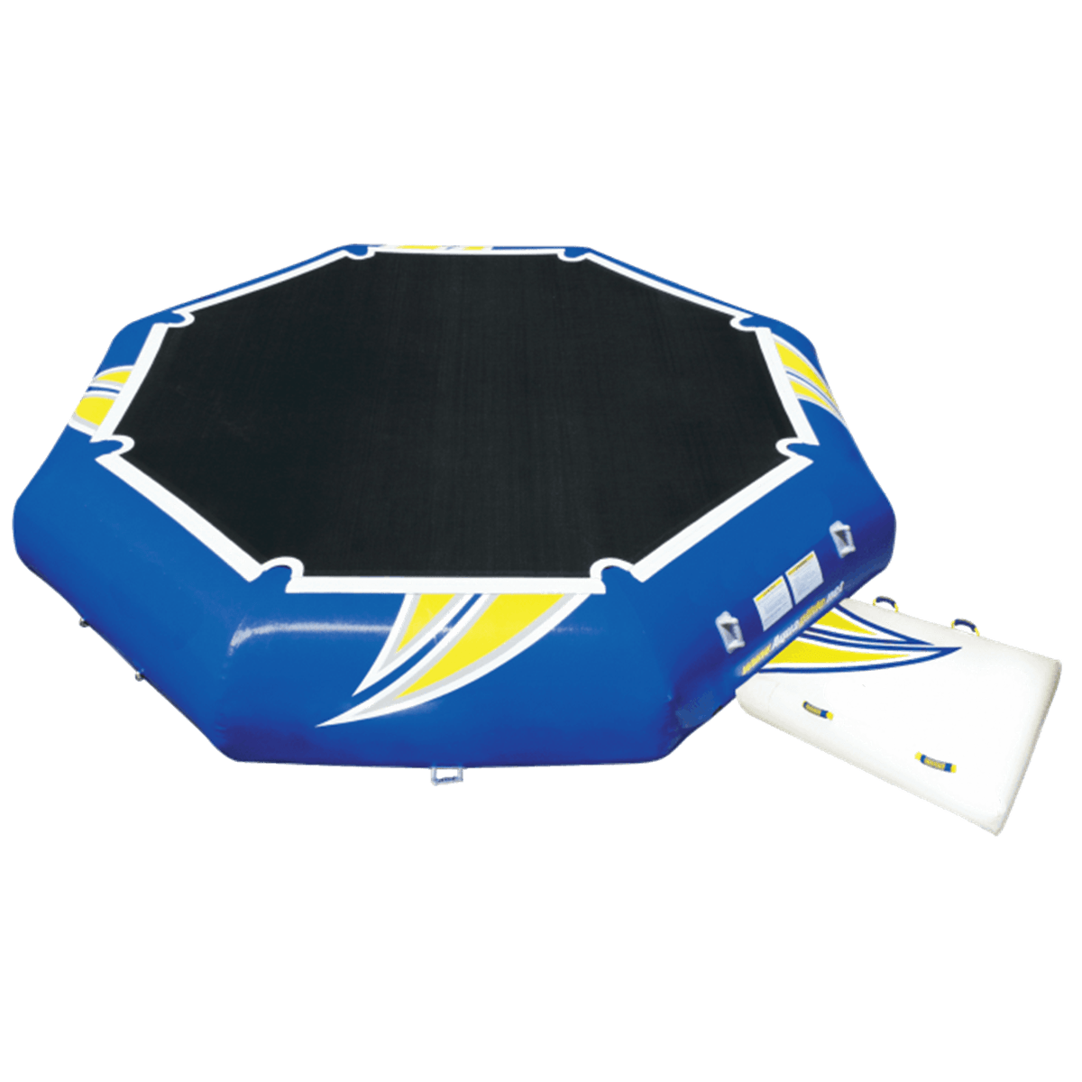 Конструкция предусматривает мягкие борта для дополнительной безопасности пользователей и прочные крепёжные кольца по периметру — для соединения с другими модулями или якорными системами.
