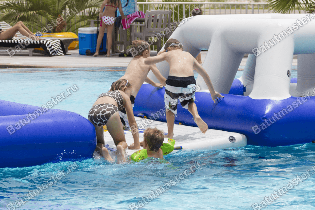 Этот модуль часто устанавливается у краёв трасс, батутов, «джунглей» или «подиюмов», обеспечивая удобный доступ для всех участников водных игр. Он также незаменим при организации зон безопасности и точек отдыха на воде.