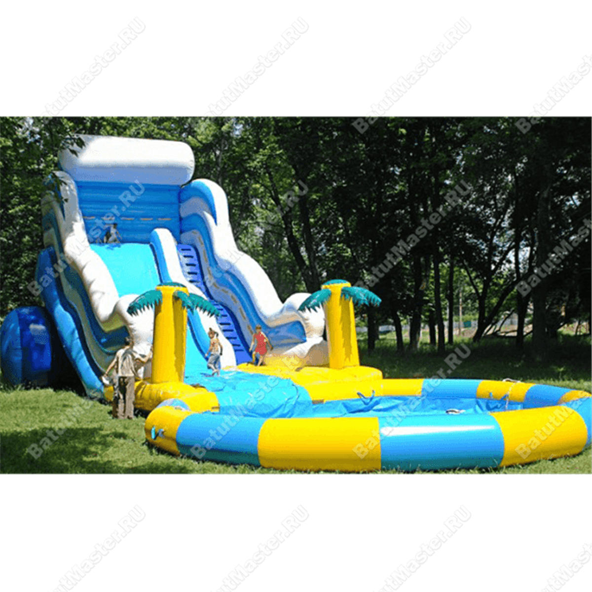 Размер горки 14*6*7 м, бассейн размером 7*7 м