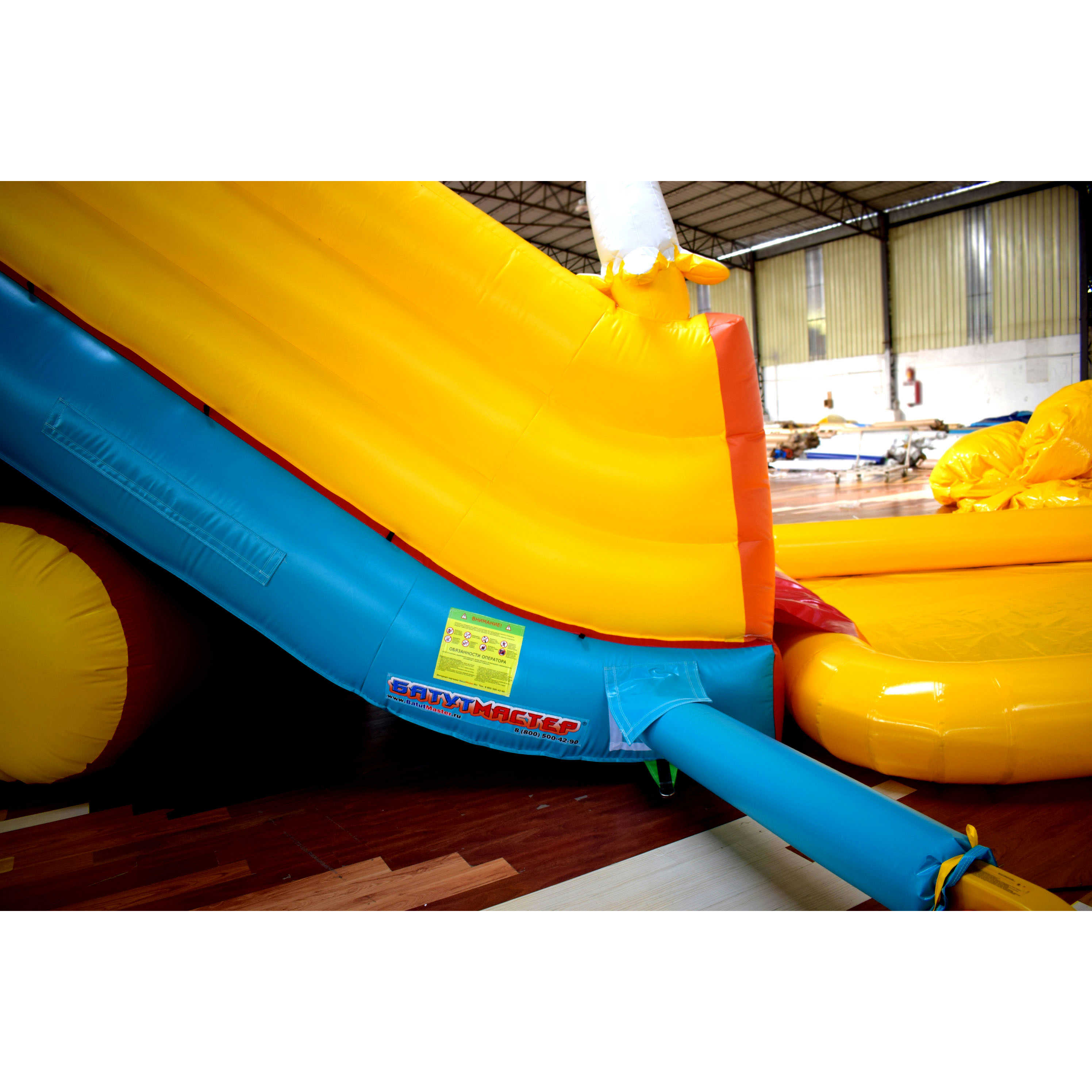 Горка с высотой стартовой площадки 3,5 метра обеспечивает безопасный и увлекательный спуск в бассейн, который имеет площадь 20 квадратных метров. Продуманная конструкция исключает риск выпадения детей за пределы аквапарка, а мягкие надувные бортики обеспечивают дополнительную безопасность.