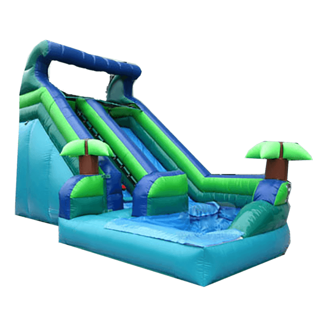 «Островок» — это аттракцион формата «всё в одном», объединивший в себе высокую водную горку и просторный бассейн. Размеры 7x4x4.5 метра позволяют безопасно и удобно использовать изделие сразу нескольким детям (до 7 человек одновременно). Модель выполнена в яркой морской стилистике с элементами пальм, что сразу же привлекает внимание детей и родителей.