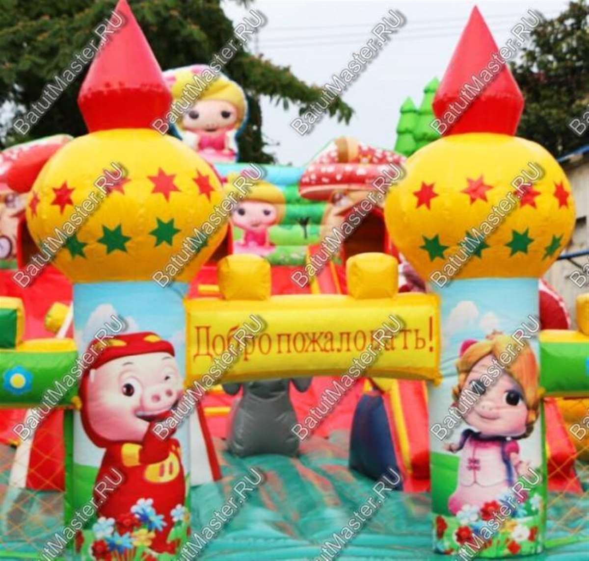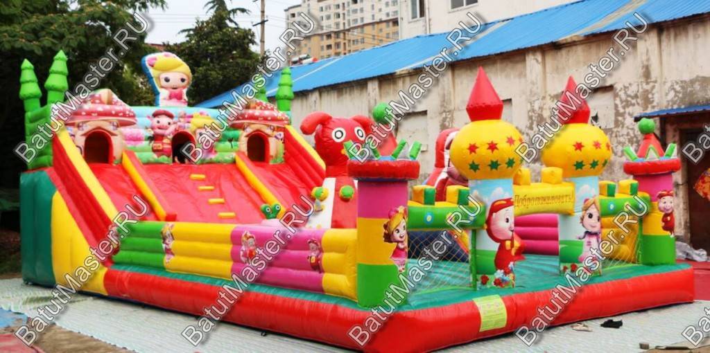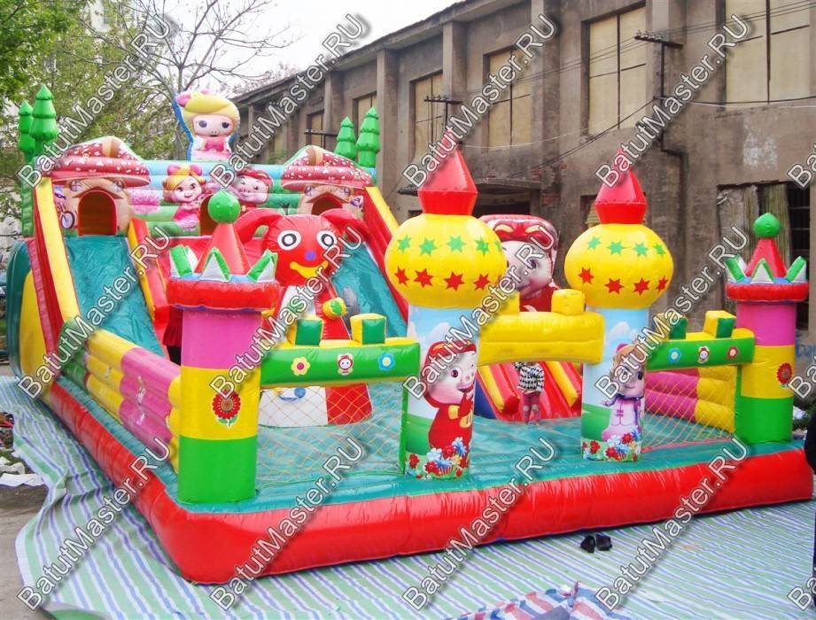 Сказка про трех поросят приходит к детям еще в самом раннем детстве, поэтому ее знает каждый малыш и с удовольствием окунется в атмосферу этой истории, то есть посетит данный яркий батут. Красочные башни на фасадной стенке и полностью прозрачные с обеих сторон впечатлят даже взрослого прохожего. Центральное место коммерческого батута отведено просторной площадке, на ней можно встретить игровые фигуры и элементы-украшения.