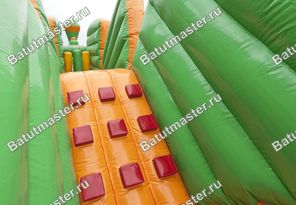 Батут выполнен из ламинированной ткани ПВХ высокого качества. Он не выгорает на солнце, а также противостоит возгоранию. Предназначен для бизнеса.