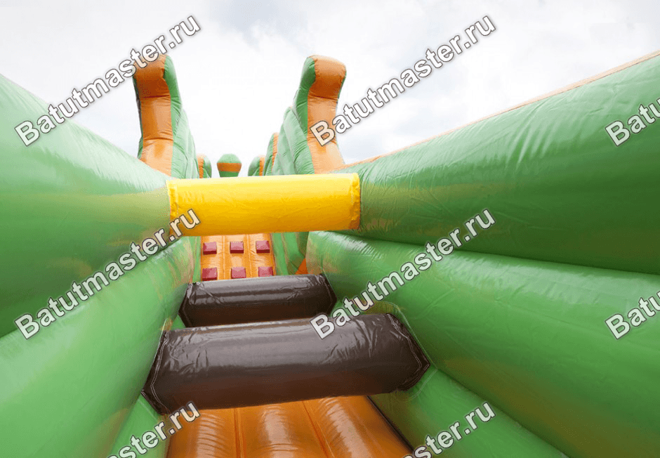 Батут «Тоннель мишкина радость» выполнен в виде веселого паровозика. Это не простой надувной батут, это целый комплекс для веселого времяпровождения и развития ловкости и координации движений у детей. Весь путь - это одна сплошная полоса препятствий, где есть горизонтальные модули, под которыми нужно проползти, а также вертикальные столбцы, кольца, подъемы и спуски и многое другое.